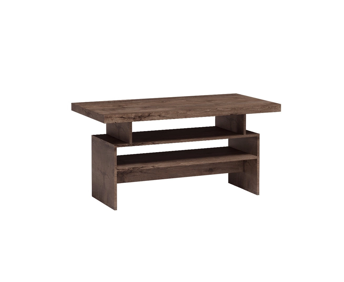 Stolik wykonany z płyty meblowej to gwarancja trwałości i stabilności przy jednoczesnym utrzymaniu funkcjonalności. Półki znajdujące się poniżej blatu zapewniają dodatkową przestrzeń na ulubione książki lub czasopisma. Stolik kawowy gwarantuje komfortowe i bezproblemowe korzystanie oraz trwałość całego mebla przez wiele lat użytkowania.