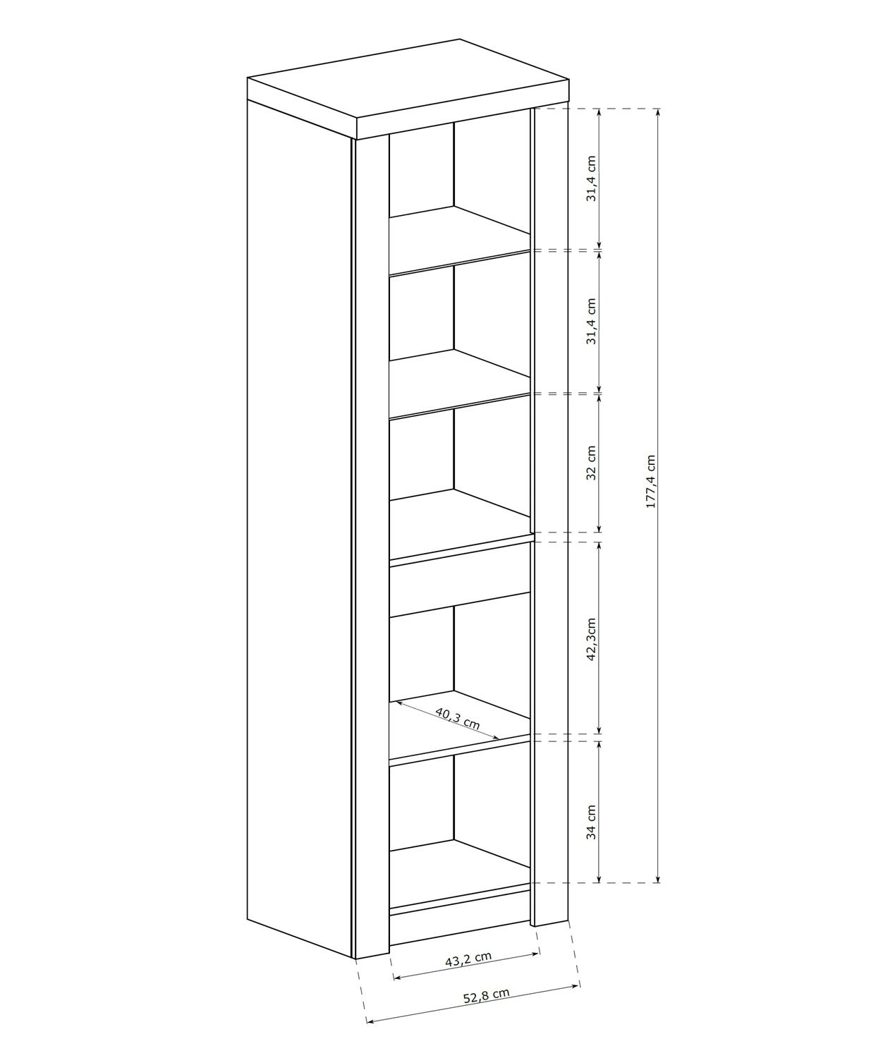 Witryna jest skonstruowana 2 drzwi. Witryna wykonana została z wysokiej jakości płyty laminowanej, która charakteryzuje się odpornością na wpływ czynników zewnętrznych takich jak obicia, uderzenia i niefortunne zadrapania. Dzięki prostej formie oraz uniwersalności witryny szklane Indiana świetnie sprawdzą się w roli witryny do salonu, witryny do pokoju dziennego lub witryny do jadalni, a także witryny na książki.
