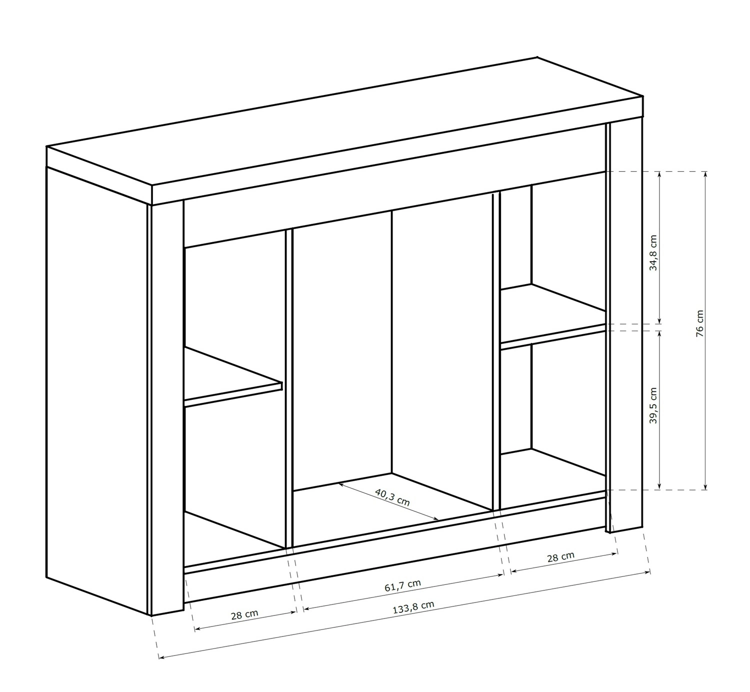Komoda do salonu wykonana została z wysokiej jakości płyty laminowanej, która charakteryzuje się odpornością na wpływ czynników zewnętrznych takich jak obicia, uderzenia i niefortunne zadrapania. Pojemne szuflady oraz zamykane szafki pomieszczą wszystkie rzeczy oraz niezbędne akcesoria.