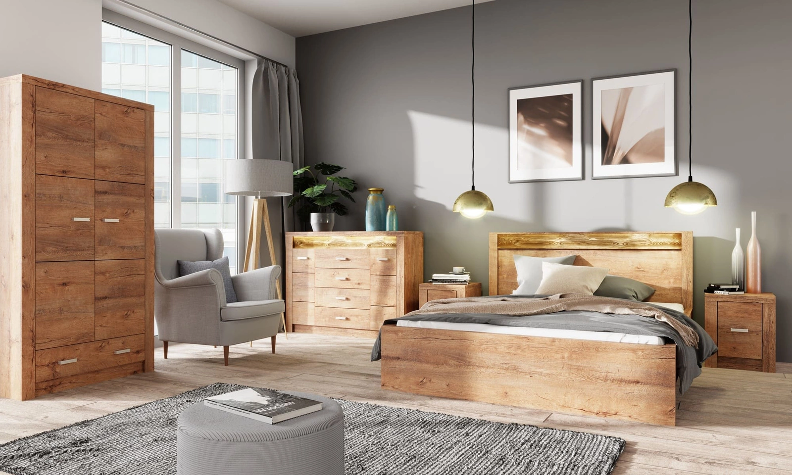 - Komoda z szufladami Indiana to propozycja dla osób ceniących nowoczesne aranżacje. Prosta forma i ozdobna deska z drewna sosnowego, którą uwydatnia oświetlenie LED, doskonale wpasuje się w każde wnętrze, dodając mu elegancji i przestronności.