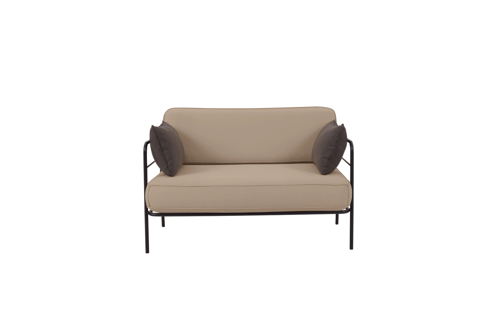 Fotel ogrodowy Teneryfa czarny / jasny beż / brązowy duży fotel z poduchami szerokie siedzisko metalowa stabilna konstrukcja