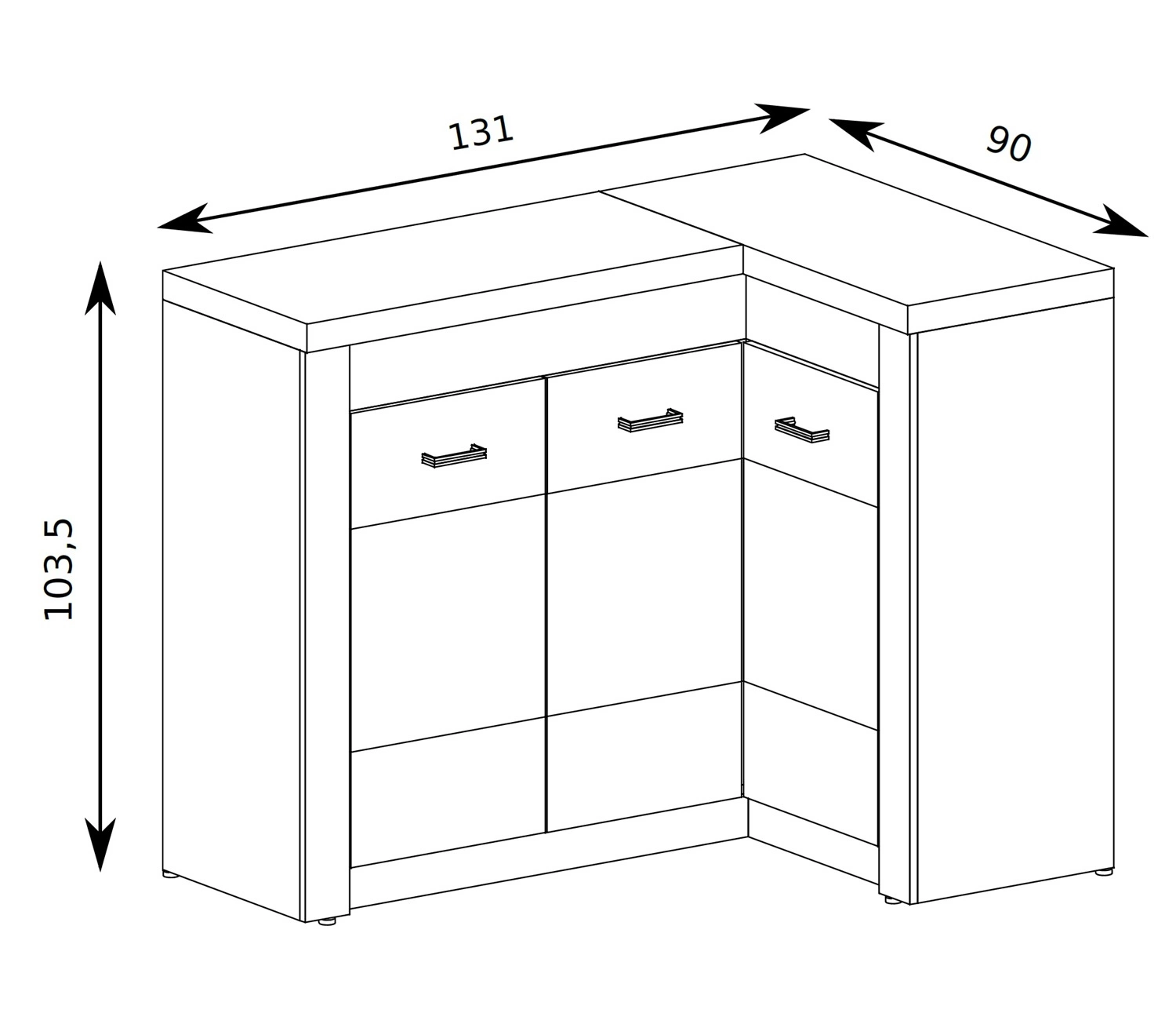 Komoda narożna Indiana stanie się stylową wizytówką każdego pomieszczenia, dodając mu niepowtarzalnego charakteru.