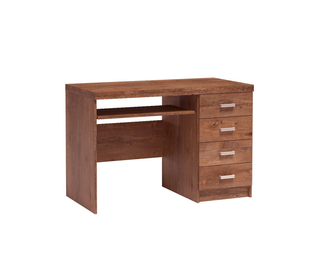 Biurko z wysuwaną półką na klawiaturę zostało wykonane z wysokiej jakości płyty laminowanej, która charakteryzuje się odpornością na wpływ czynników zewnętrznych takich jak obicia, uderzenia i niefortunne zadrapania. Pojemne szuflady pomieszczą wszystkie rzeczy oraz niezbędne akcesoria. Precyzyjne wykończenie i dbałość o detale sprawiają, że biurko Indiana zachowa swój piękny wygląd na wiele lat, nie tracąc przy tym na funkcjonalności.