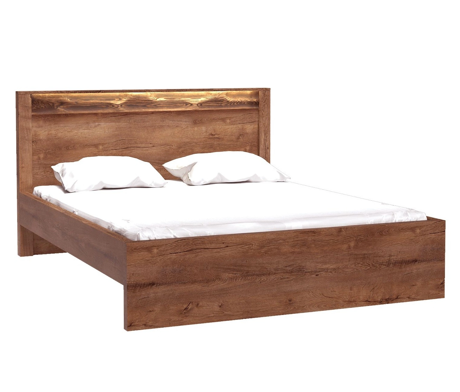 - Łóżko Indiana to propozycja dla osób ceniących nowoczesne aranżacje. Prosta forma i ozdobna deska z drewna sosnowego, którą uwydatnia oświetlenie LED, doskonale wpasuje się w każde wnętrze, dodając mu elegancji i przestronności.