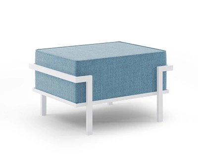 Puf ogrodowy Ibiza biały / morski nietuzinkowy design komfortowy puf na taras lub balkon stabilny metalowy stelaż wygodne siedzisko