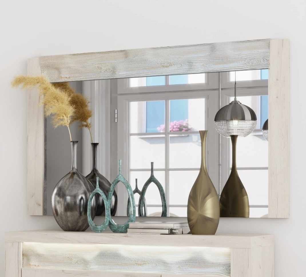 Lustro wiszące Indiana 120x80 cm kraft biały prostokątne lustro w ramie idealny dodatek do przedpokoju sypialni lub garderoby