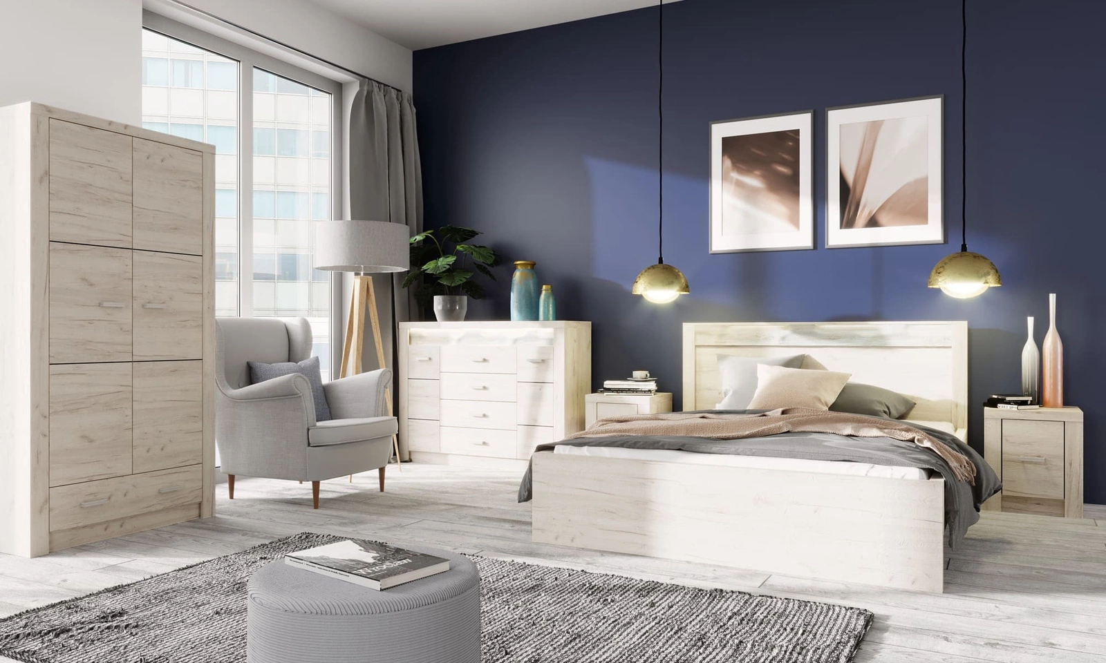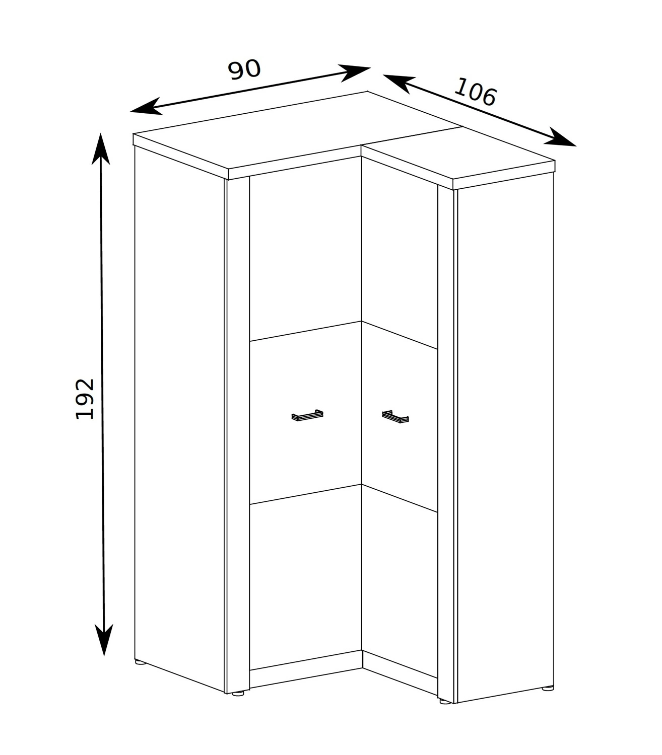Szafa jest skonstruowana z 2 drzwi. Szafa narożna gwarantuje komfortowe i bezproblemowe korzystanie oraz trwałość całego mebla przez wiele lat użytkowania. Subtelna kolorystyka nada pomieszczeniu lekkości i przytulnego klimatu, dzięki czemu szafa narożna z powodzeniem się jako szafa do sypialni, jako szafa do przedpokoju lub szafa do pokoju dziecięcego. Szafy do pokoju Indiana doskonale sprawdzą się także w roli garderoby do przedpokoju.