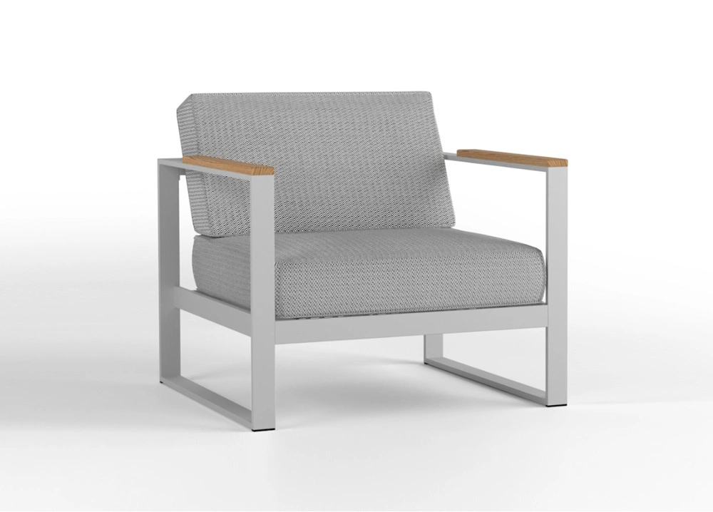 Fotel ogrodowy z kolekcji Casablanca to mebel o minimalistycznej konstrukcji w nowoczesnym designie, który idealnie wkomponuje się w każdą aranżację na tarasie, balkonie lub ogrodowej strefie wypoczynkowej stanowiąc funkcjonalną oraz oryginalną ozdobę. Komfortowe poduszki wypełniające siedzisko i oparcie fotela obszyte są niezwykle trwałą i odporną tkaniną Portoriko 7189 w czarno białej kolorystyce. Stelaż fotela został wykonany z wysokogatunkowej stali, która zapewnia stabilność i lekkość konstrukcji. Podłokietniki wykonane są z drewna bukowego zabezpieczonego olejem. Nowoczesne wzornictwo mebli ogrodowych z kolekcji Casablanca sprawdzi się nawet w najbardziej wymagającej przestrzeni.