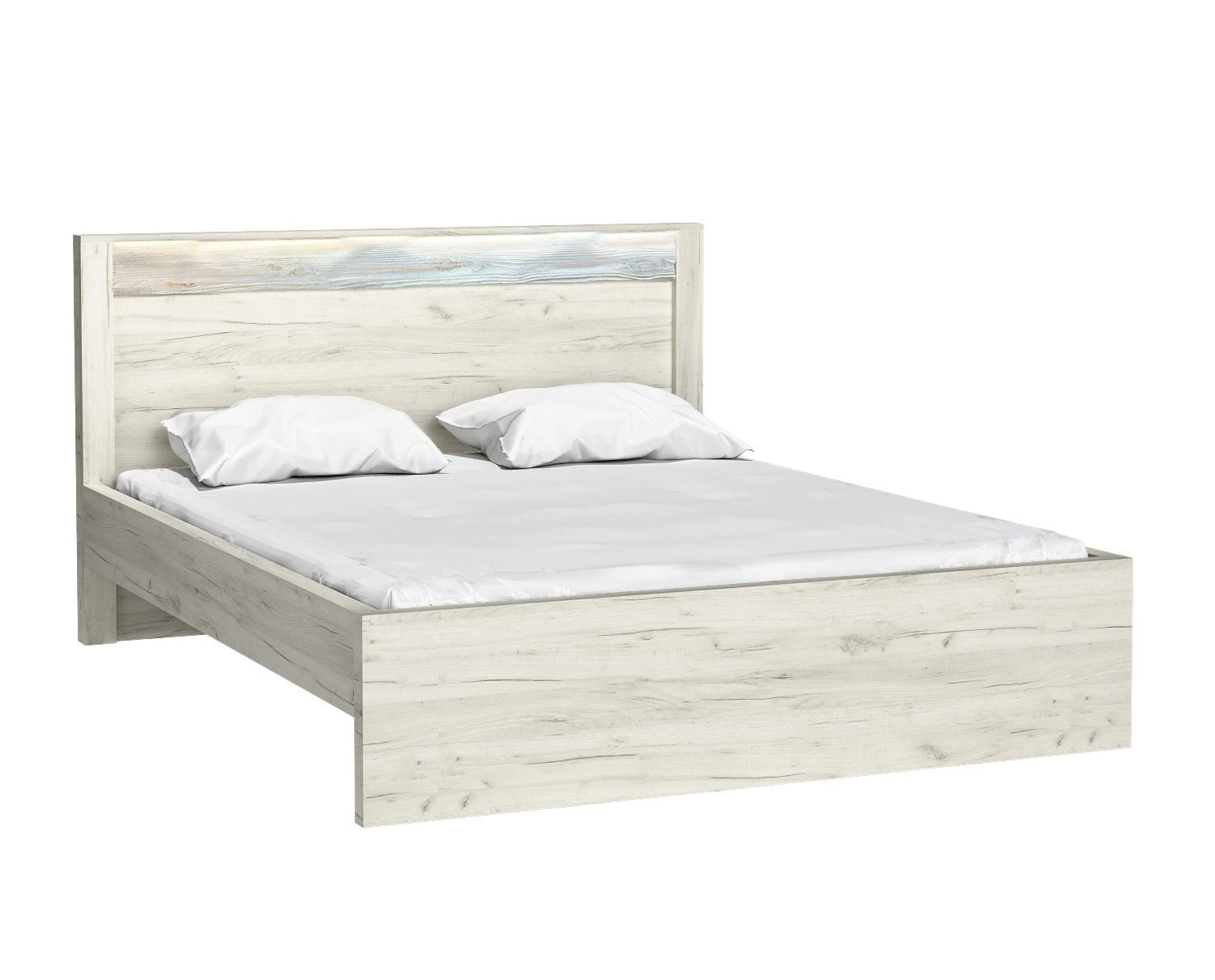Zestaw mebli do sypialni Indiana jesion jasny wyszukana stylistyka mebli ozdobna deska na frontach oświetlona LED subtelne srebrne uchwyty