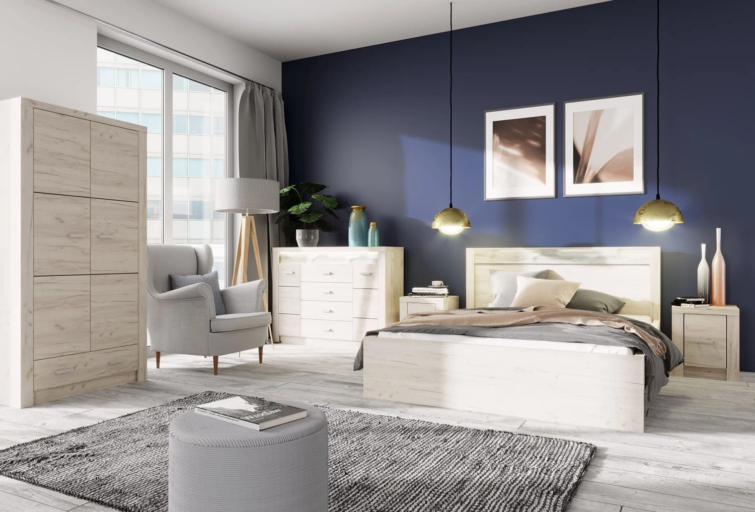 Zestaw mebli do sypialni Indiana w kolorze kraft biały to nowoczesny design mebla, który stanie się stylowym wykończeniem wnętrza.