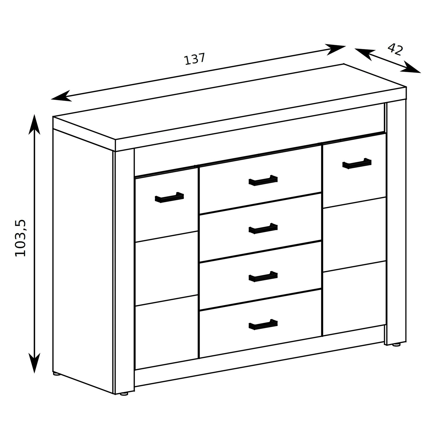 Meble zostały wykonane z wysokiej jakości płyty laminowanej, która charakteryzuje się odpornością na wpływ czynników zewnętrznych takich jak obicia, uderzenia i niefortunne zadrapania. Precyzyjne wykończenie i dbałość o detale sprawiają, że zestaw mebli do sypialni Indiana zachowa swój piękny wygląd na wiele lat, nie tracąc przy tym na funkcjonalności.