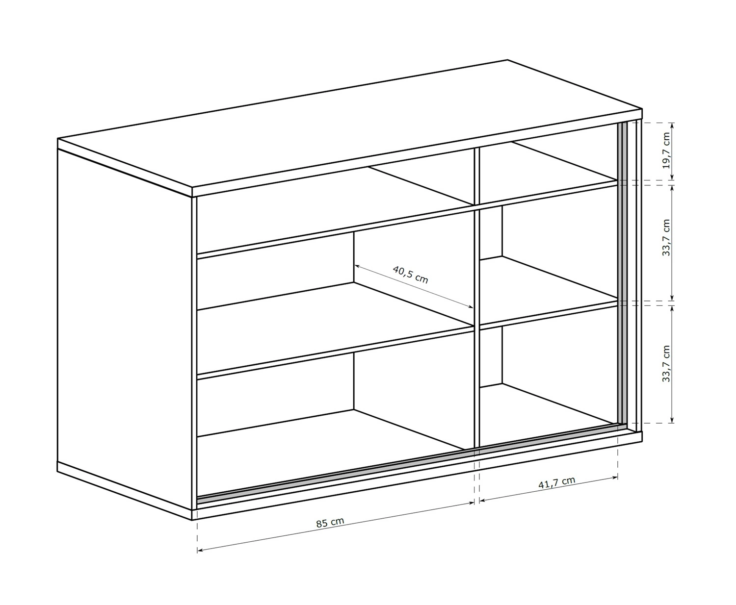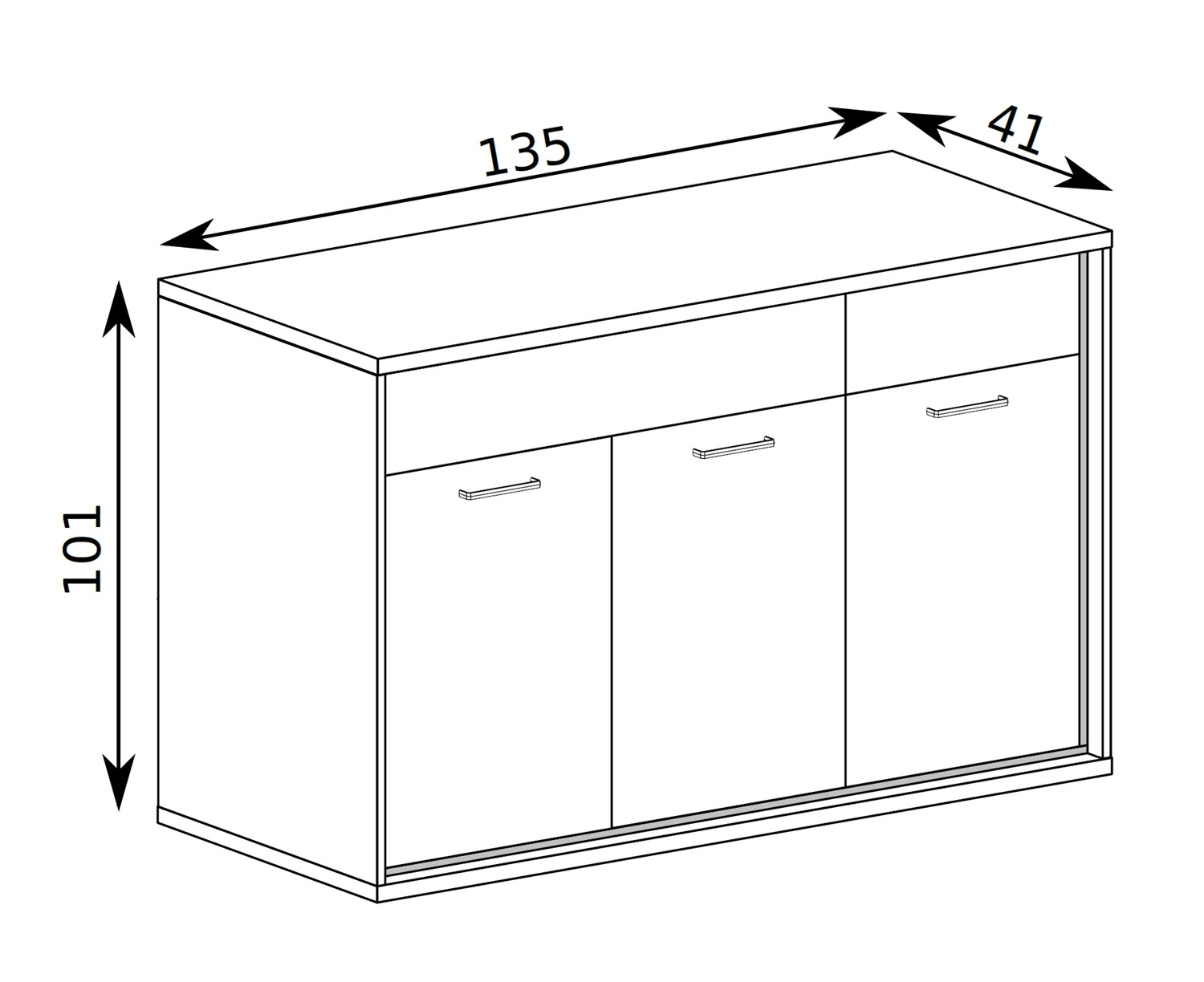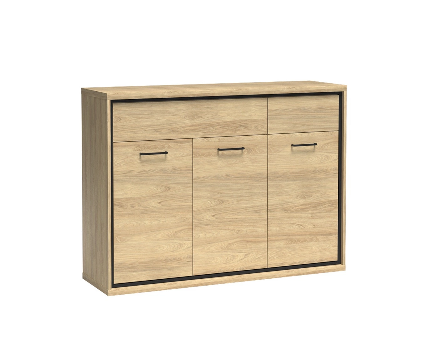 Komoda do salonu wykonana została z wysokiej jakości płyty laminowanej, która charakteryzuje się odpornością na wpływ czynników zewnętrznych takich jak obicia, uderzenia i niefortunne zadrapani. Komoda do salonu Mediolan została zaprojektowana w sposób funkcjonalny i użytkowy, oferując dużo miejsca do przechowywania. Pojemne szuflady oraz zamykane szafki pomieszczą wszystkie rzeczy oraz niezbędne akcesoria. Funkcjonalny, bezuchwytowy system otwierania szuflad push to open to kolejna zaleta komody do salonu.