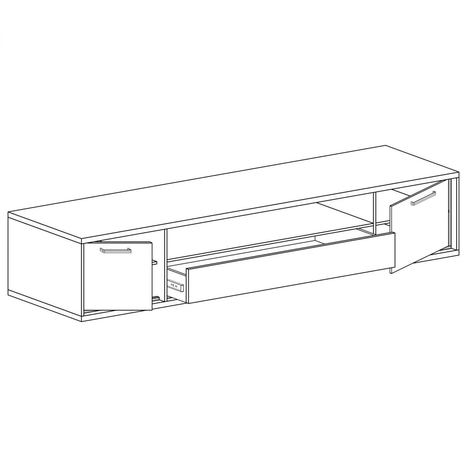 Szafka RTV wykonana została z wysokiej jakości płyty laminowanej, która charakteryzuje się odpornością na wpływ czynników zewnętrznych takich jak obicia, uderzenia i niefortunne zadrapania. Szafka pod telewizor Mediolan została zaprojektowana w sposób funkcjonalny i użytkowy, oferując dużo miejsca do przechowywania. Pojemna szuflada oraz zamykane szafki pomieszczą wszystkie rzeczy oraz niezbędne akcesoria. Wnęki w szafce są świetnym miejscem na sprzęt rtv lub konsolę do gier. Funkcjonalny, bezuchwytowy system otwierania szuflady push to open to kolejna zaleta szafki pod telewizor.
