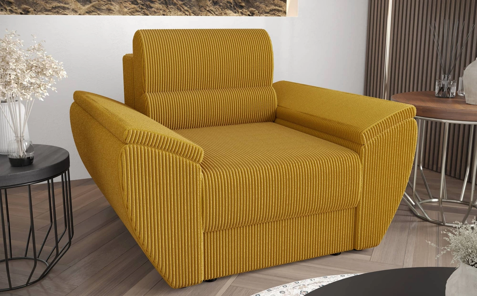 Fotel Fogu w kolorze miodowym to stylowy mebel, który odmieni wygląd każdego wnętrza.