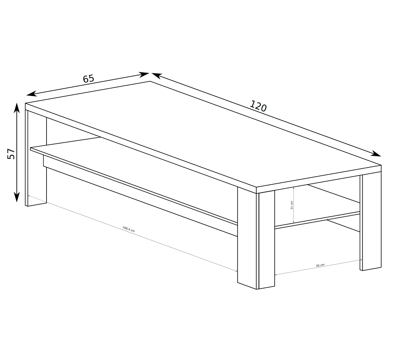 Stolik wykonany z płyty meblowej to gwarancja trwałości i stabilności przy jednoczesnym utrzymaniu funkcjonalności. Półka znajdująca się poniżej blatu zapewnia dodatkową przestrzeń na ulubione książki lub czasopisma. Stolik kawowy gwarantuje komfortowe i bezproblemowe korzystanie oraz trwałość całego mebla przez wiele lat użytkowania.