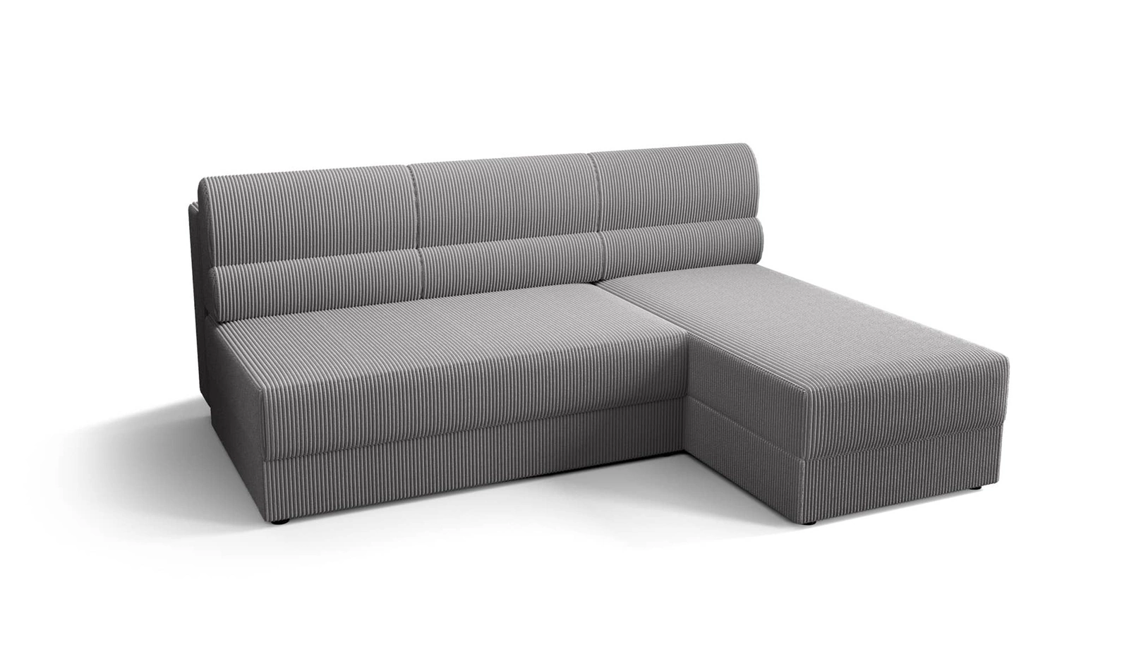 Narożnik z funkcją spania Fogu szary popiel prawostronny narożnik o prostym designie pokryty sztruksową tkaniną pojemnik na pościel