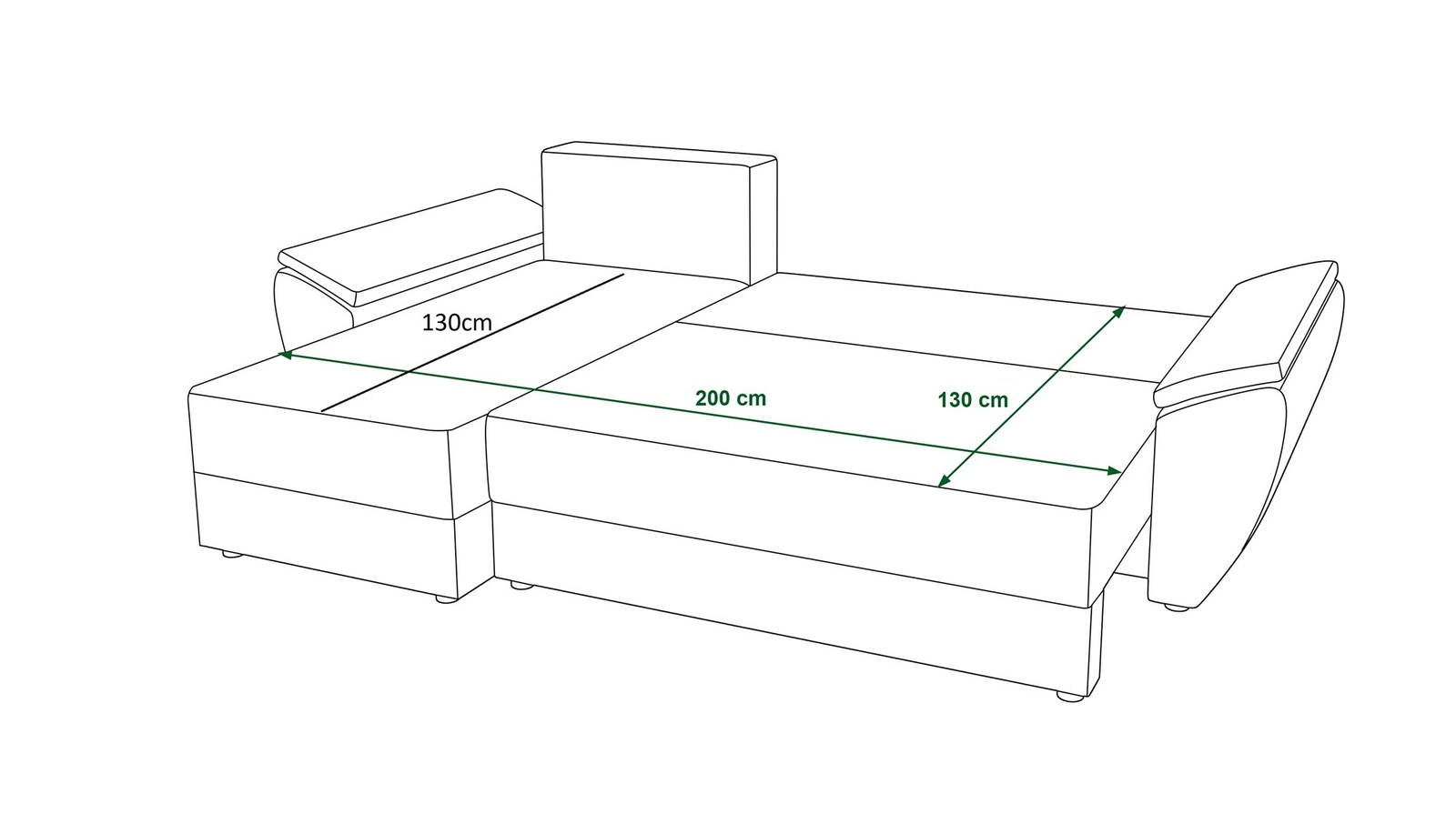 Dzięki swoim wymiarom oraz szerokiej funkcjonalności narożnik z funkcją spania świetnie sprawdzi się jako narożnik do pokoju dziennego lub jako narożnik rozkładany do pokoju gościnnego. Narożnik z funkcja spania to także świetna alternatywa łóżka w pokoju młodzieżowym. Szerokość narożnika 251 cm, wysokość 88 cm oraz głębokość 140 cm. Powierzchnia spania narożnika wynosi 130x200 cm. Wysokość siedziska mebla to 39 cm, a wysokość oparcia wynosi 47 cm. Pianka poliuretanowa T30 to materiał, z którego wykonane zostało siedzisko narożnika. Miękkie poduchy oparciowe zapewnią wysoki komfort podczas codziennego odpoczynku, który docenisz Ty a także goście, którzy zasiądą na tym wyjątkowym narożniku.