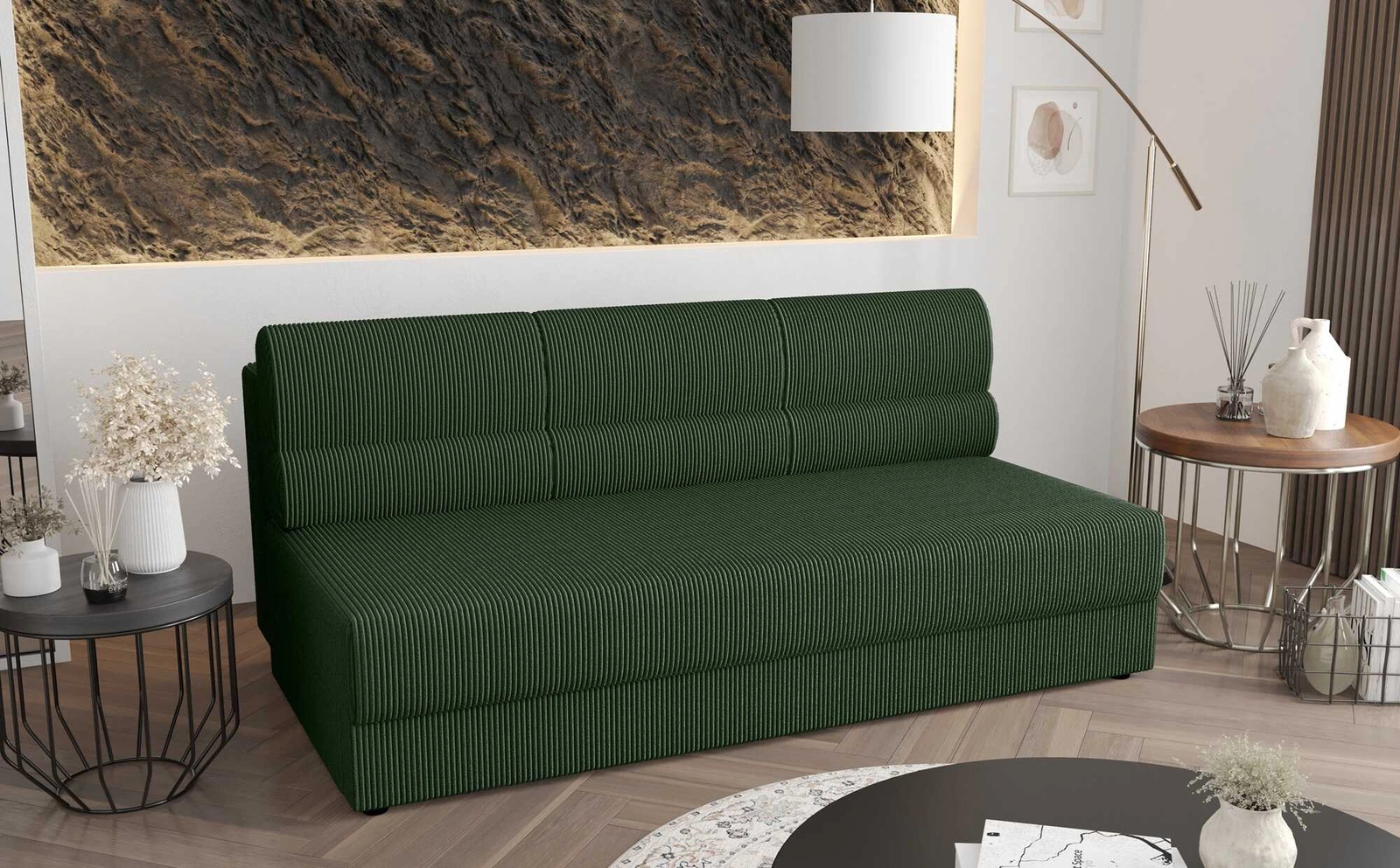 Kanapa rozkładana Fogu zielona prosta forma sofy w nowoczesnym designie sztruksowa tkanina obiciowa pojemnik na pościel