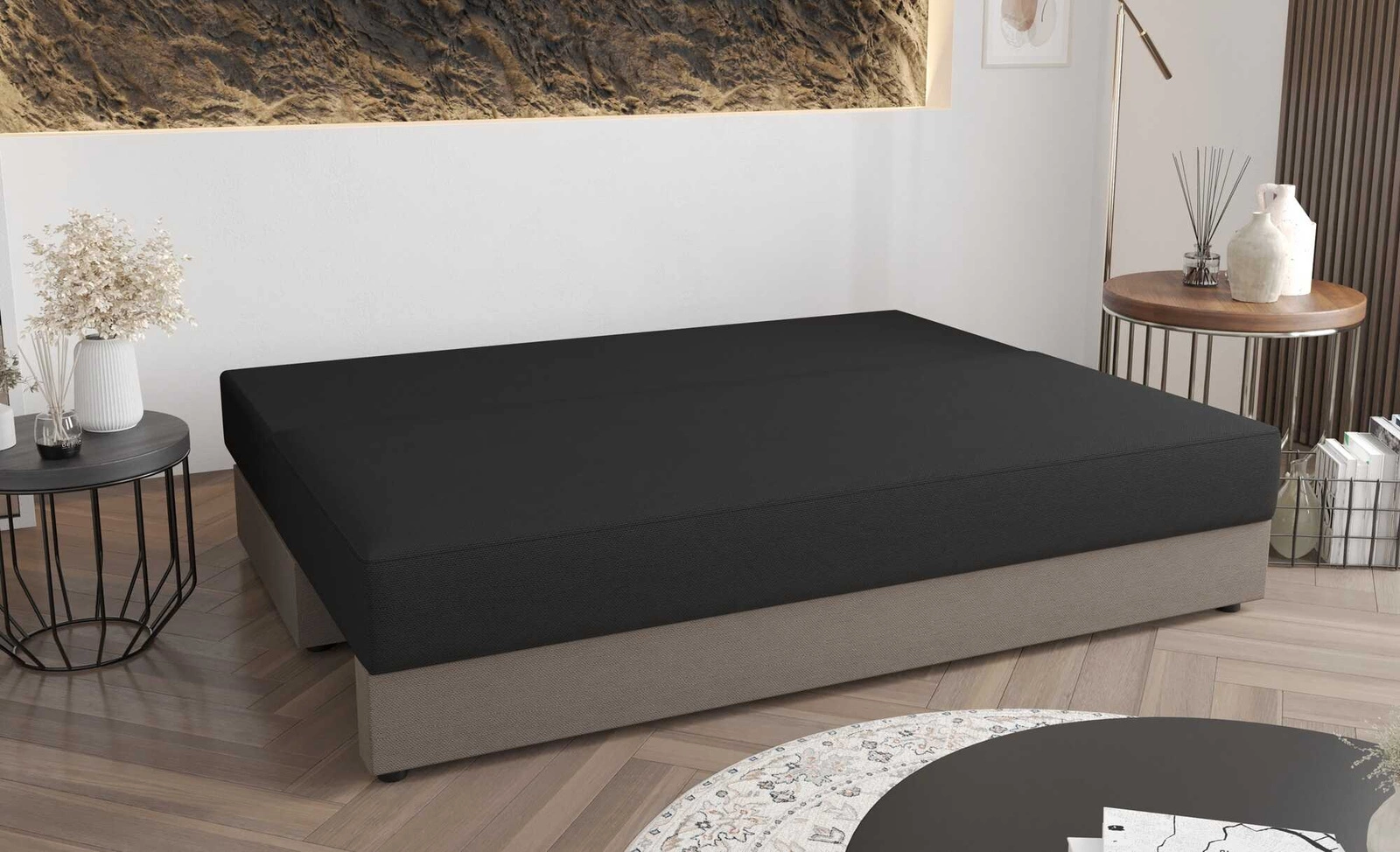Kanapa Fogu jest wyposażona w pojemnik na pościel, po rozłożeniu zyskujemy miejsce do spania.