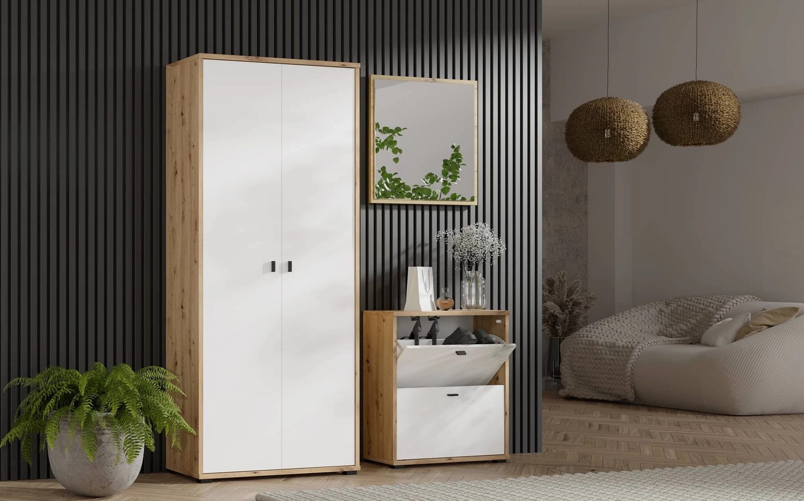 Klasyczny styl idealnie koresponduje z aktualnymi trendami wnętrzarskimi dzięki czemu meble z kolekcji Anter łatwo zaaranżować w garderobie, sypialni lub w przedpokoju. Panel z lustrem jest przystosowany do zawieszenia na ścianie oraz gwarantuje komfortowe i bezproblemowe korzystanie oraz trwałość przez wiele lat użytkowania.