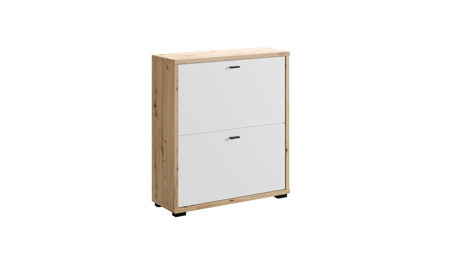 Szafka na buty Anter dąb artisan / biały funkcjonalna szafka do przedpokoju praktyczne 2 drzwi otwierane do dołu