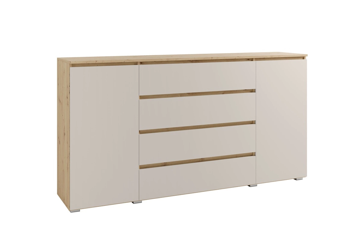 Komoda z szufladami Simple 184 cm dąb artisan / beżowy funkcjonalna i pojemna komoda do salonu lub sypialni prosta konstrukcja