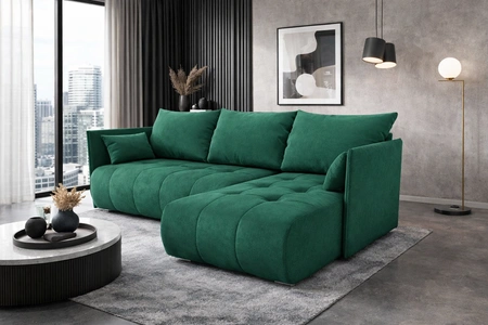 Narożnik Selva w kolorze butelkowa zieleń to atrakcyjny mebel, który z łatwością odnajdzie się w każdym pomieszczeniu Twojego domu.