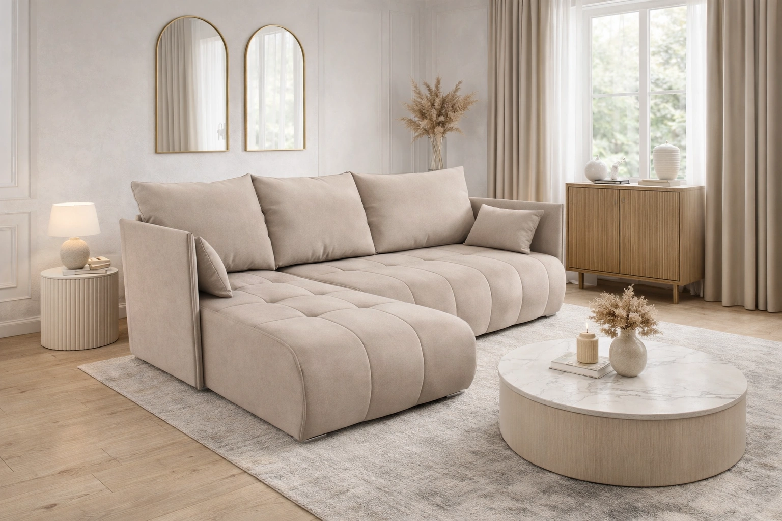 Narożnik Selva w kolorze jasny beżowy to atrakcyjny mebel, który z łatwością odnajdzie się w każdym pomieszczeniu Twojego domu.