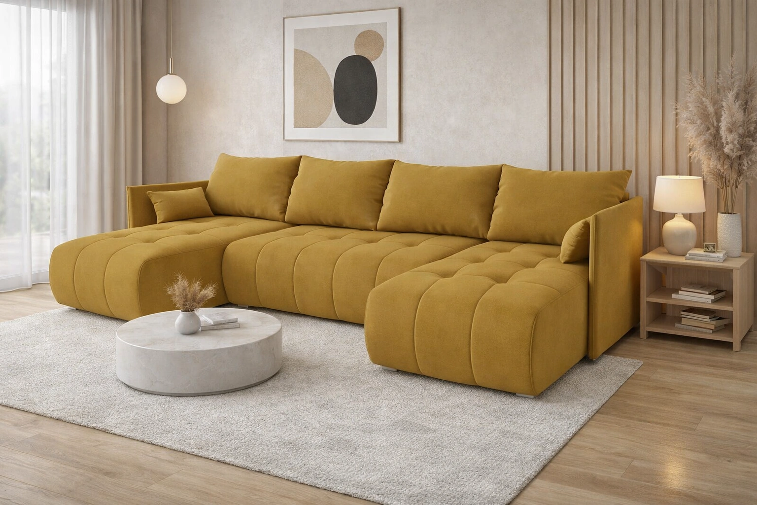 Narożnik Selva U w kolorze musztardowym to atrakcyjny mebel, który z łatwością odnajdzie się w każdym pomieszczeniu Twojego domu.