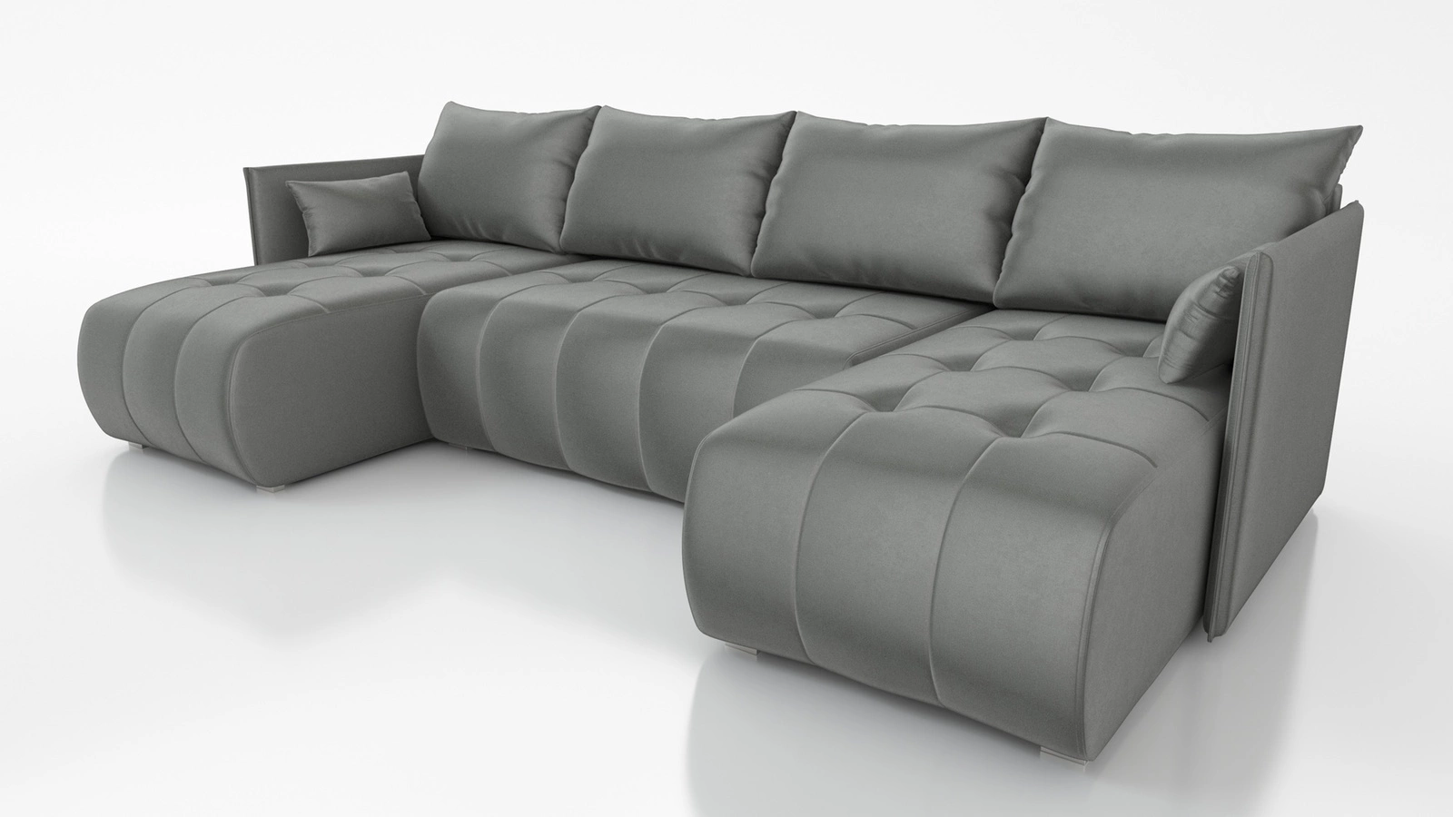 Narożnik z funkcją spania Selva U to prosty mebel o nowoczesnym designie, który idealnie wkomponuje się w każdą aranżację. Narożnik w całości pokryty został tkaniną typu velvet Monolith 84. Narożnik charakteryzuje się wysoką jakością wykonania, nowoczesnym wyglądem podkreślonym ozdobnymi przeszyciami oraz pikowaniami zdobiąc siedzisko bryły. Gustowne poduchy oparciowe zapewnią jeszcze większy komfort i wygodę użytkowania tego niezwykle modernistycznego narożnika.