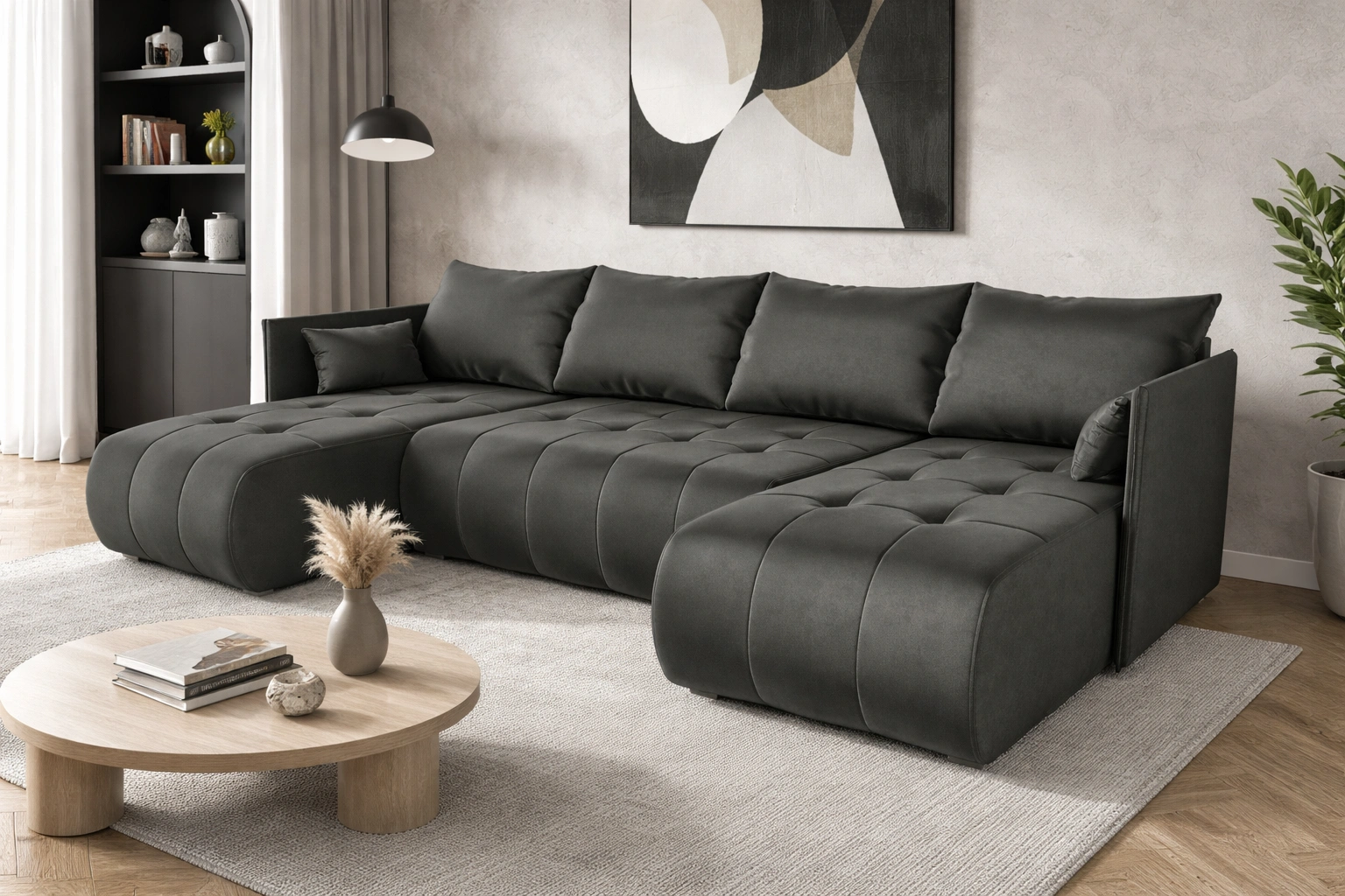 Narożnik z funkcją spania Selva U szary ciekawie prezentujący się narożnik wykonany z miękkiej tkaniny typu velvet