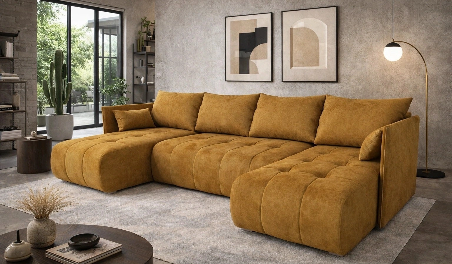 Narożnik Selva U w kolorze miodowym to atrakcyjny mebel, który z łatwością odnajdzie się w każdym pomieszczeniu Twojego domu.