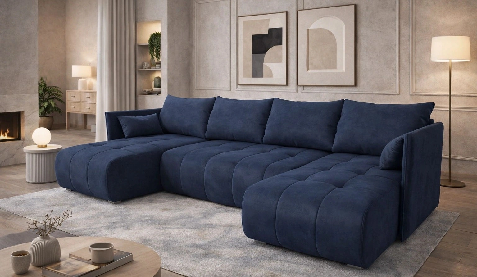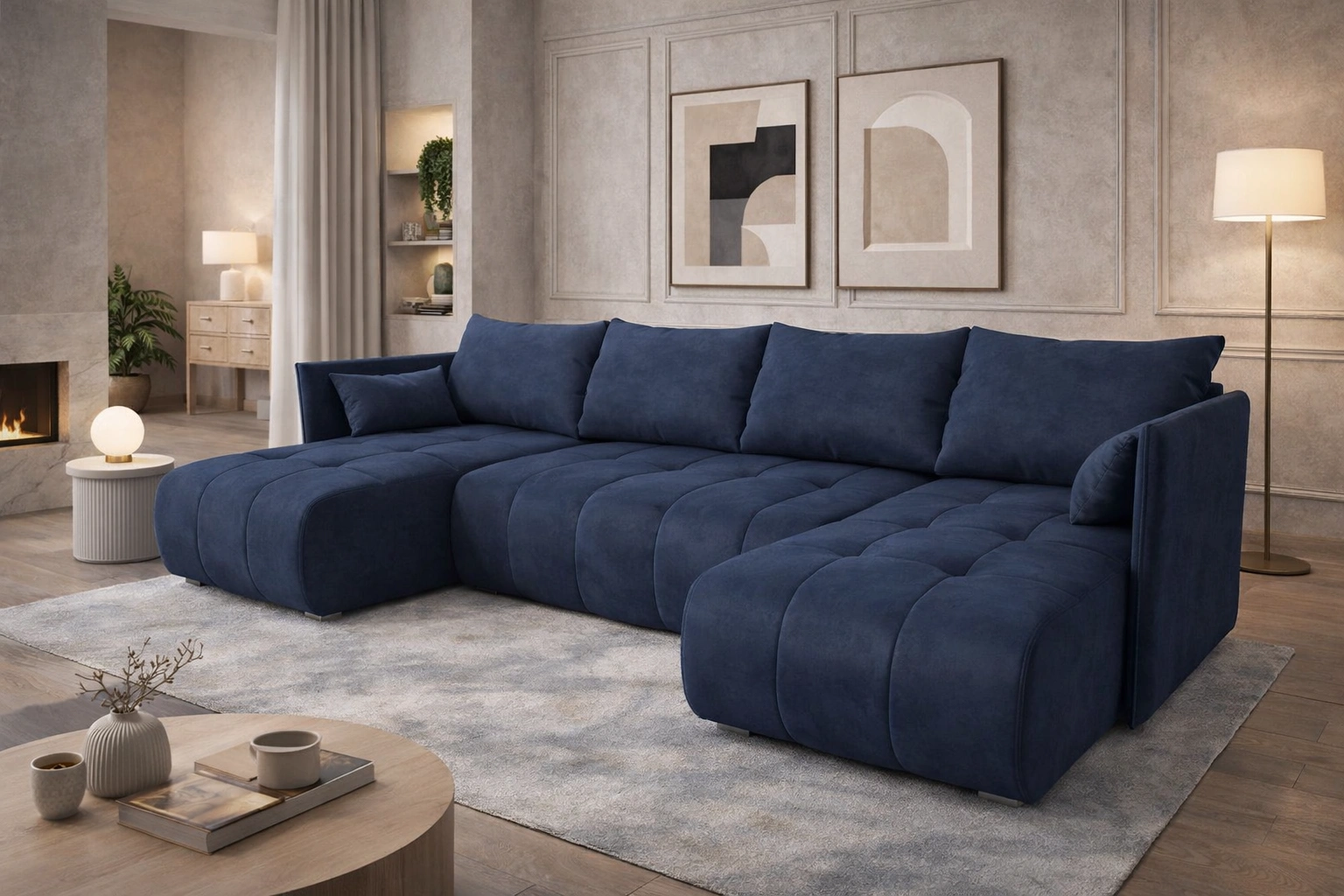 Narożnik Selva U w kolorze niebieskim to atrakcyjny mebel, który z łatwością odnajdzie się w każdym pomieszczeniu Twojego domu.