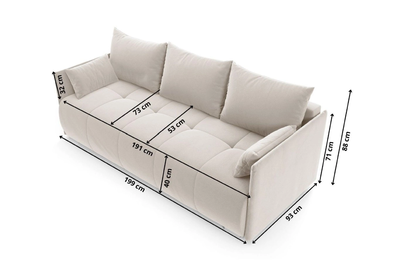 Rozłożenie pełnej powierzchni spania jest bardzo łatwe i nie wymaga użycia dużej siły. Wszystko dzięki zastosowaniu mechanizmu DL, który charakteryzuje się prostą budową i długą żywotnością. Powierzchnia spania kanapy wynosi 142x191 cm. Mebel wyposażony został w niskie nóżki wykonane z tworzywa sztucznego. Ta funkcjonalna kanapa wpasuje się do każdego typu pomieszczenia. Gwarantuje komfortowe i bezproblemowe korzystanie oraz trwałość całego mebla przez wiele lat użytkowania. Idealnie sprawdzi się w roli kanapy do salonu, kanapy z funkcją spania oraz każdym wnętrzu urządzonym w Twoim ulubionym stylu.