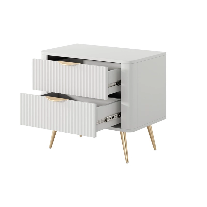 Szafka nocna Lante biała stylowa szafka z szufladami idealna do sypialni w stylu glamour i skandynawskim oryginalny kształt bryły