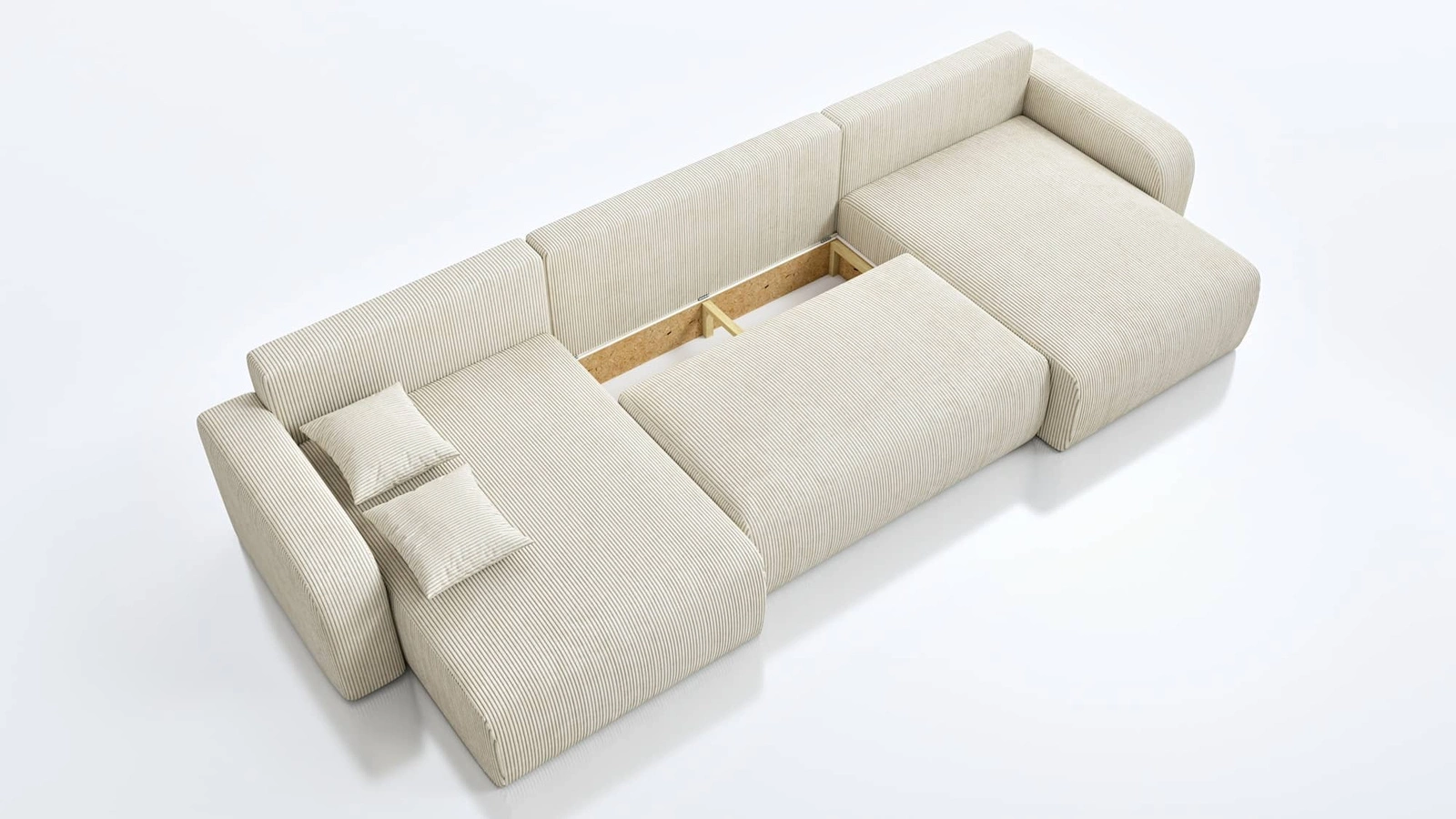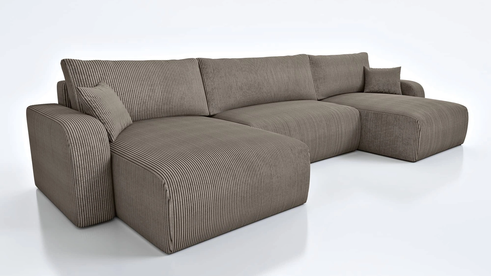 - Narożnik Fiesta U XL charakteryzuje się wysoką elegancją i komfortem. Połączenie minimalistycznej konstrukcji z obłymi kształtami dodaje nietuzinkowego wyglądu. Miękka sztruksowa tkanina o wyrazistych prążkach oraz prosty w obsłudze system rozkładania.