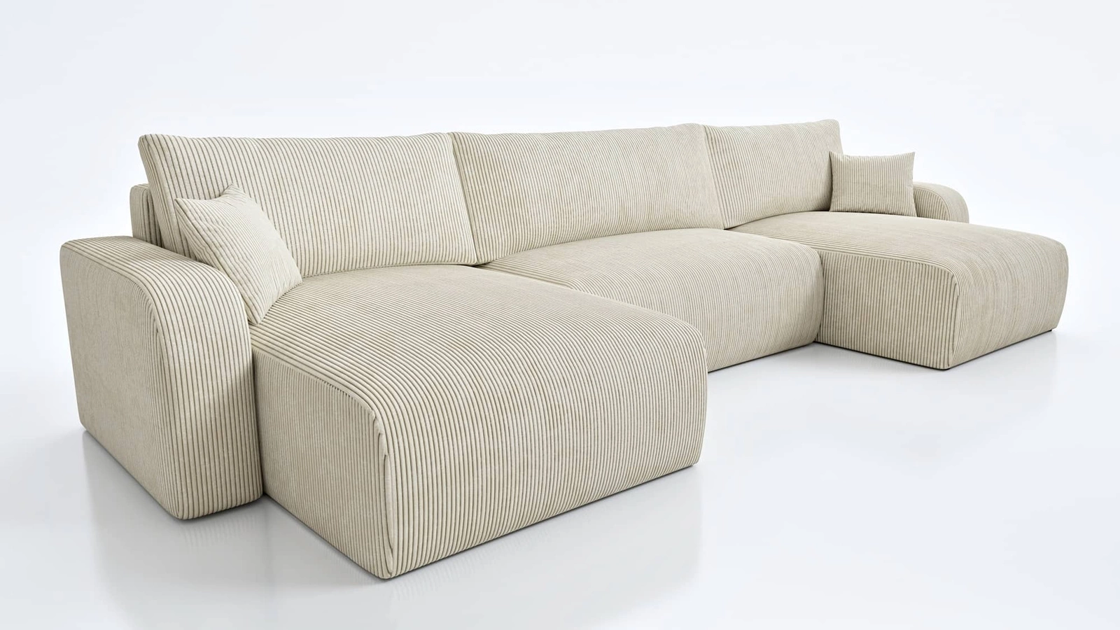 - Narożnik Fiesta U XL charakteryzuje się wysoką elegancją i komfortem. Połączenie minimalistycznej konstrukcji z obłymi kształtami dodaje nietuzinkowego wyglądu. Miękka sztruksowa tkanina o wyrazistych prążkach oraz prosty w obsłudze system rozkładania.