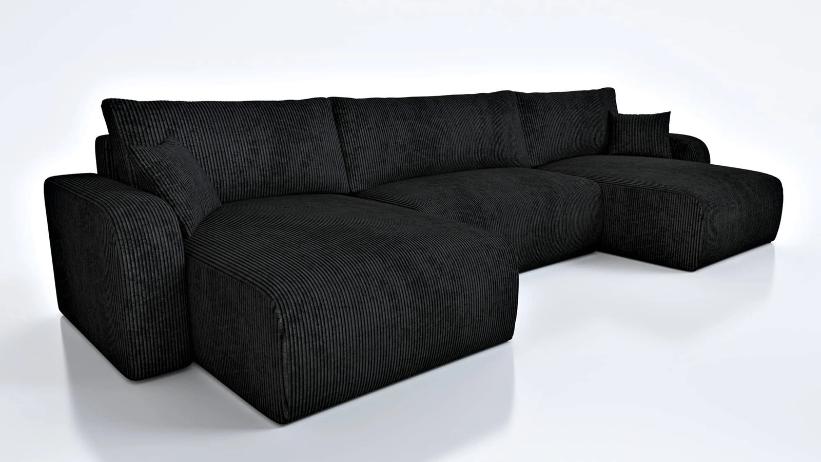 Narożnik z funkcją spania Fiesta U XL czarny elegancki narożnik do salonu z pojemnikiem na pościel sztruksowa tkanina