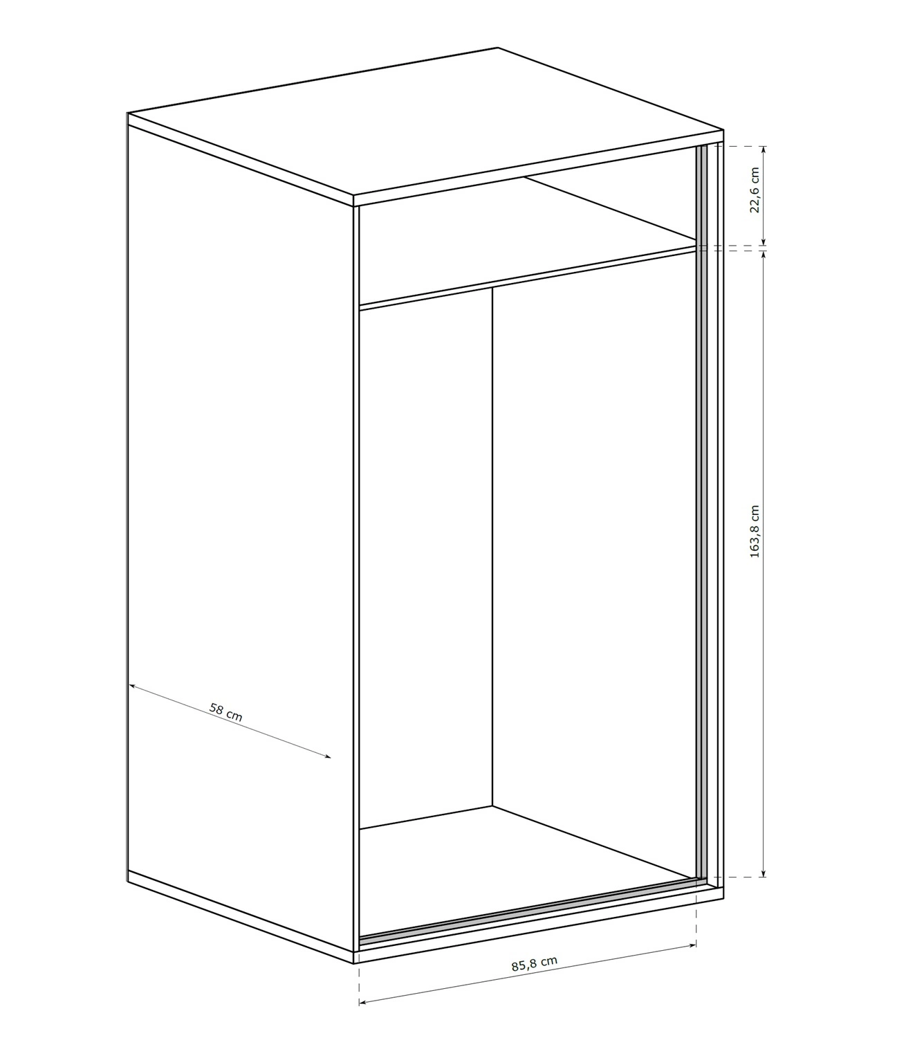 Szafa Mediolan Plus dzieli się na część z drążkiem na ubrania wiszące oraz półką. Wysokie, metalowe nogi o wysokości 10cm gwarantują stabilność całej bryły. Szafa na ubrania została wykonana z wysokiej jakości płyty laminowanej, która charakteryzuje się dużą odpornością na wpływ czynników zewnętrznych takich jak obicia, uderzenia i niefortunne zadrapania. Przemyślany układ wnętrza szafy pozwoli na harmonijne uprządkowanie każdej garderoby oraz niezbędnych akcesoriów, zachowując przy tym estetykę i elegancję.