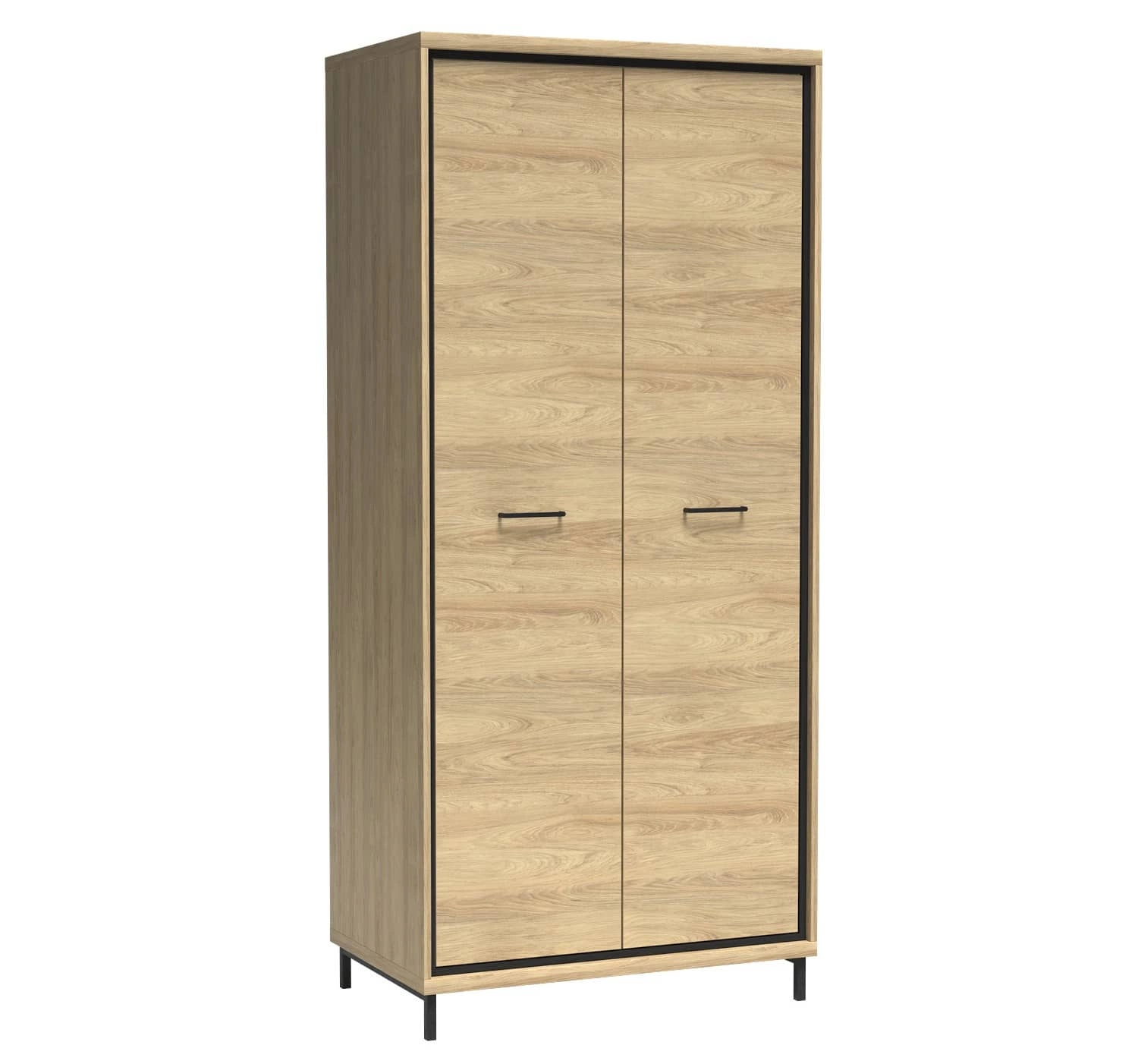 Szafa Mediolan Plus 92 cm hikora szafa z półkami i drążkiem idealna do sypialni garderoby lub przedpokoju wsparta na metalowych nogach