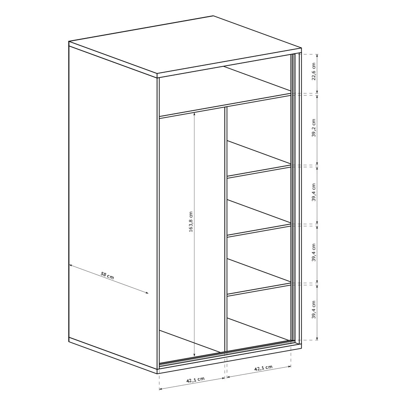 Szafa Mediolan Plus dzieli się na część z drążkiem na ubrania wiszące oraz część z półkami. Wysokie, metalowe nogi o wysokości 10cm gwarantują stabilność całej bryły. Szafa na ubrania została wykonana z wysokiej jakości płyty laminowanej, która charakteryzuje się dużą odpornością na wpływ czynników zewnętrznych takich jak obicia, uderzenia i niefortunne zadrapania. Przemyślany układ wnętrza szafy pozwoli na harmonijne uprządkowanie każdej garderoby oraz niezbędnych akcesoriów, zachowując przy tym estetykę i elegancję.