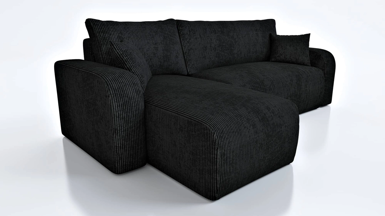 Narożnik z funkcją spania Fiesta czarny uniwersalny w ustawieniu narożnik do salonu sztruksowa tkanina pojemnik na pościel