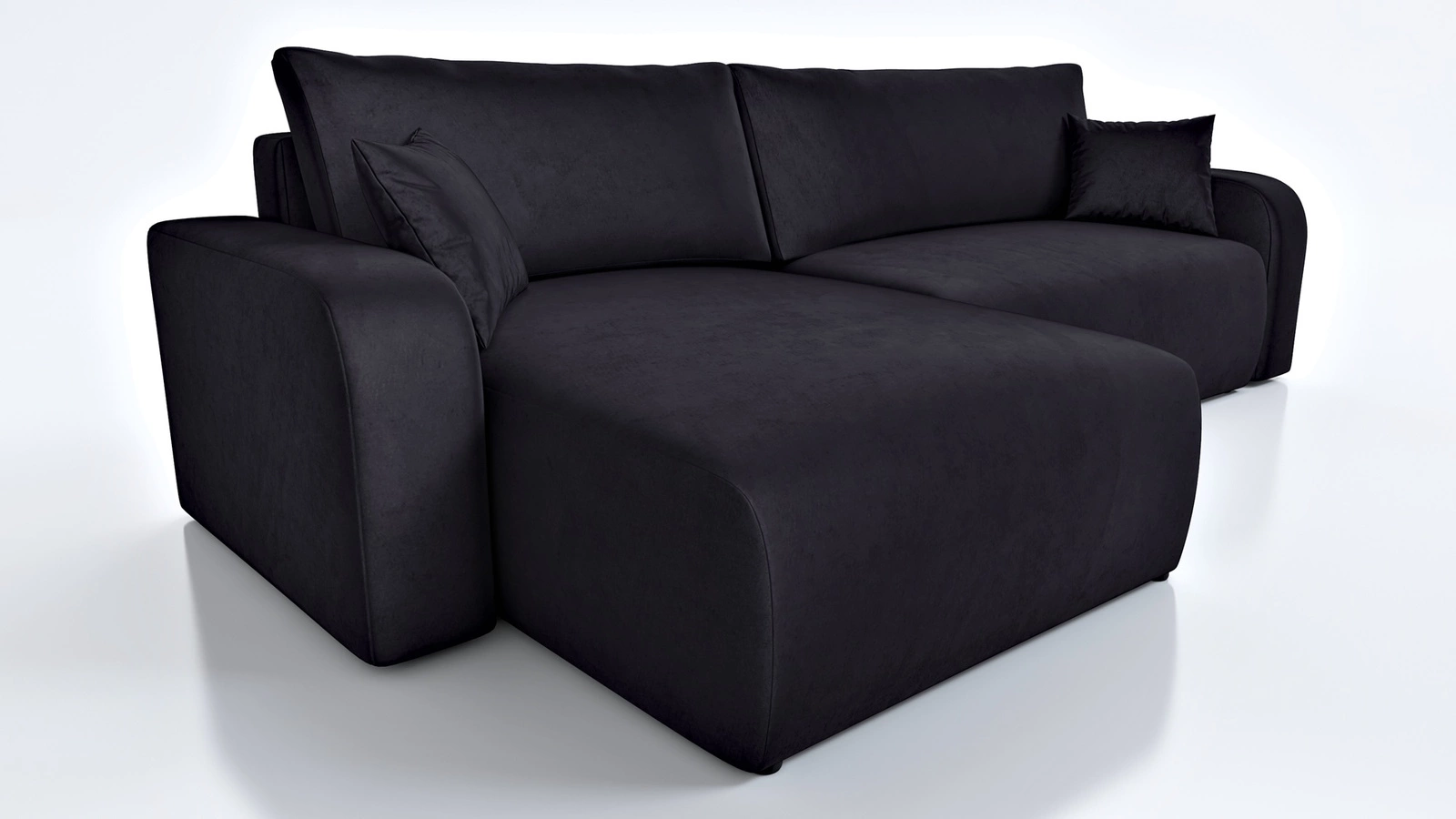 Narożnik z funkcją spania Fiesta XL czarny uniwersalny w ustawieniu narożnik z pojemnikiem na pościel wytrzymała pluszowa tkanina
