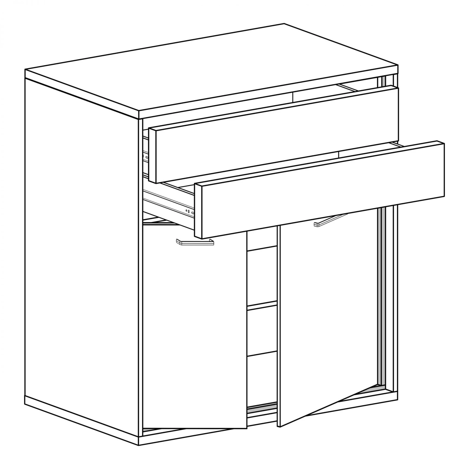 Komoda do salonu skonstruowana jest z 2 drzwi oraz 2 szuflad. Standardowym wyposażeniem są zawiasy oraz prowadnice szuflad z systemem cichego domykania. Zastosowany system zwiększa komfort i bezpieczeństwo użytkowania mebli. Komoda do salonu gwarantuje komfortowe i bezproblemowe korzystanie oraz trwałość całego mebla przez wiele lat użytkowania. Ciepłe wybarwienie hikory nada pomieszczeniu lekkości i przytulnego klimatu, dzięki czemu komoda z szufladami Mediolan Plus świetnie sprawdzi się w roli komody do salonu lub komody do pokoju dziennego. Komoda z powodzeniem odnajdzie się także jako mebel biurowy lub komoda do sypialni.