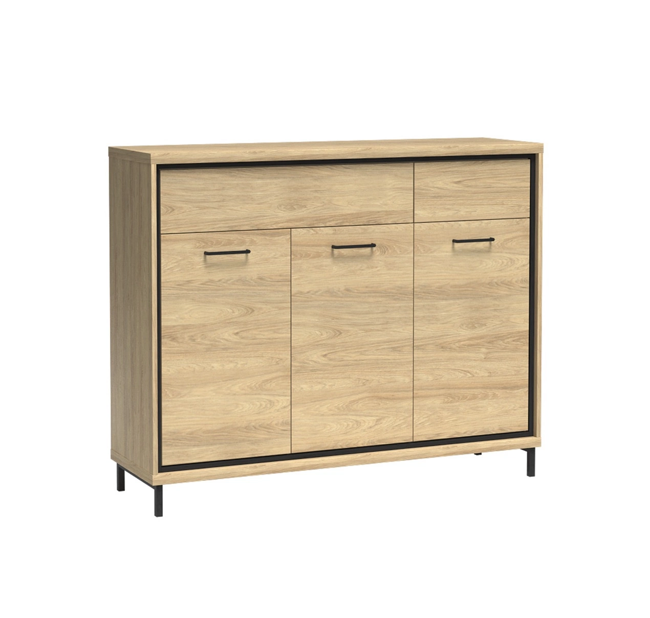 Komoda do salonu wykonana została z wysokiej jakości płyty laminowanej, która charakteryzuje się odpornością na wpływ czynników zewnętrznych takich jak obicia, uderzenia i niefortunne zadrapani. Komoda do salonu Mediolan Plus została zaprojektowana w sposób funkcjonalny i użytkowy, oferując dużo miejsca do przechowywania. Pojemne szuflady oraz zamykane szafki pomieszczą wszystkie rzeczy oraz niezbędne akcesoria. Funkcjonalny, bezuchwytowy system otwierania szuflad push to open to kolejna zaleta komody do salonu. Wysokie, metalowe nogi o wysokości 10cm gwarantują stabilność całej bryły.