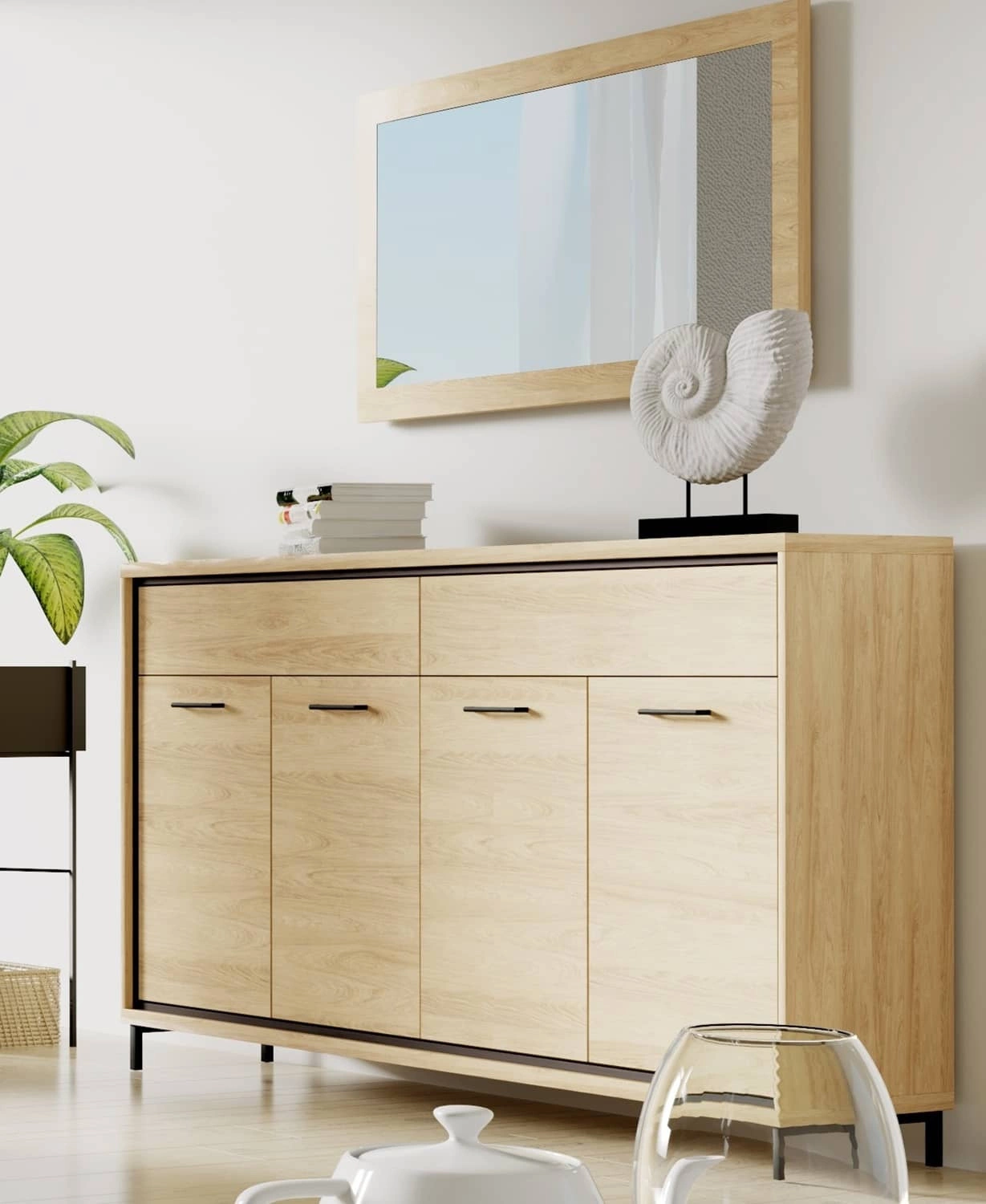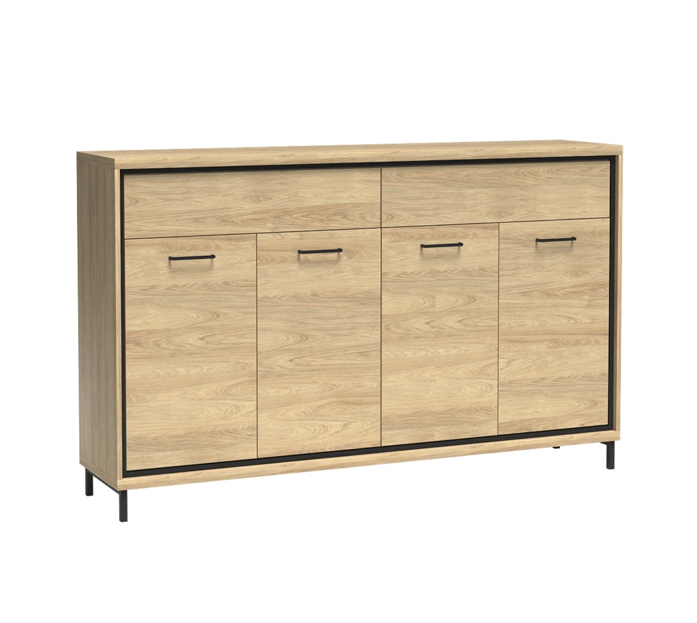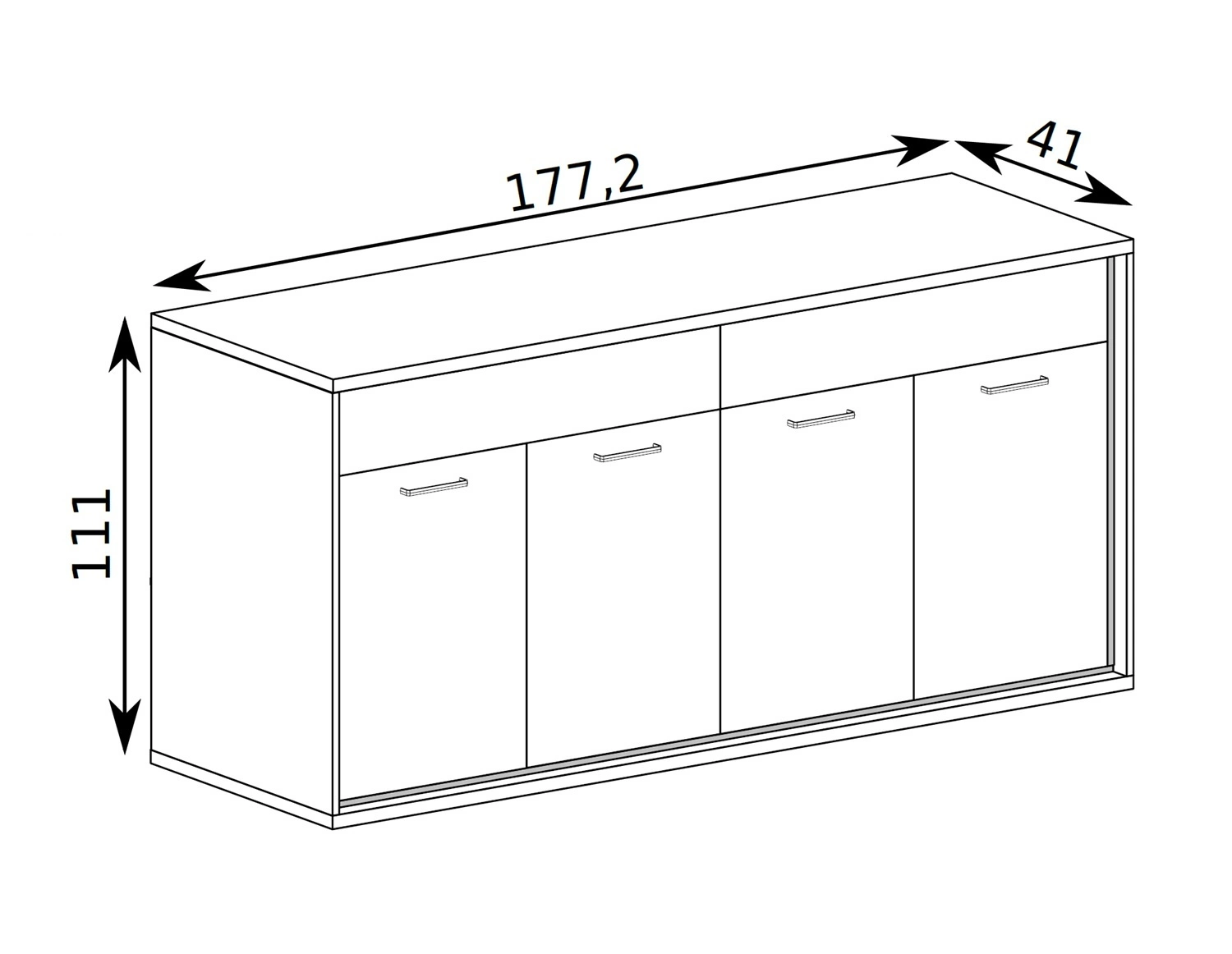 Komoda do salonu wykonana została z wysokiej jakości płyty laminowanej, która charakteryzuje się odpornością na wpływ czynników zewnętrznych takich jak obicia, uderzenia i niefortunne zadrapani. Komoda do salonu Mediolan Plus została zaprojektowana w sposób funkcjonalny i użytkowy, oferując dużo miejsca do przechowywania. Pojemne szuflady oraz zamykane szafki pomieszczą wszystkie rzeczy oraz niezbędne akcesoria. Funkcjonalny, bezuchwytowy system otwierania szuflad push to open to kolejna zaleta komody do salonu. Wysokie, metalowe nogi o wysokości 10cm gwarantują stabilność całej bryły.