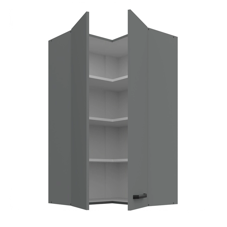 Szafka kuchenna narożna wisząca Verdi w kolorze antracytowym należy do kategorii mebli kuchennych modułowych, z których można utworzyć dowolne zestawy.