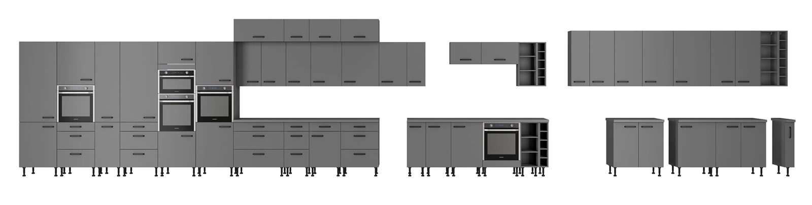 Szafka kuchenna wisząca Verdi w kolorze antracytowym należy do kategorii mebli kuchennych modułowych, z których można utworzyć dowolne zestawy.
