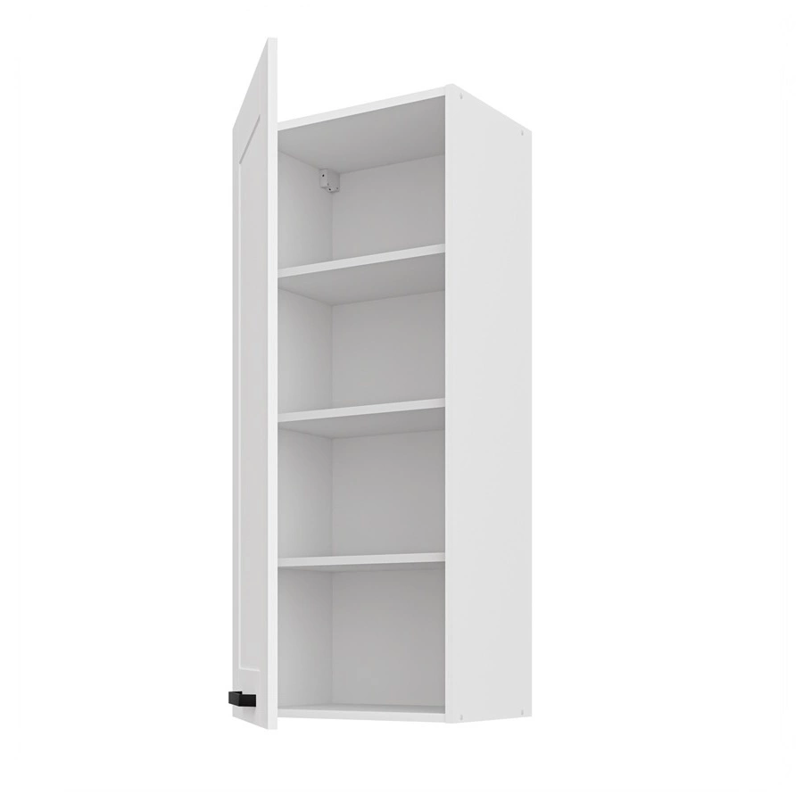 Szafka kuchenna wisząca Livio w kolorze białym należy do kategorii mebli kuchennych modułowych, z których można utworzyć dowolne zestawy.