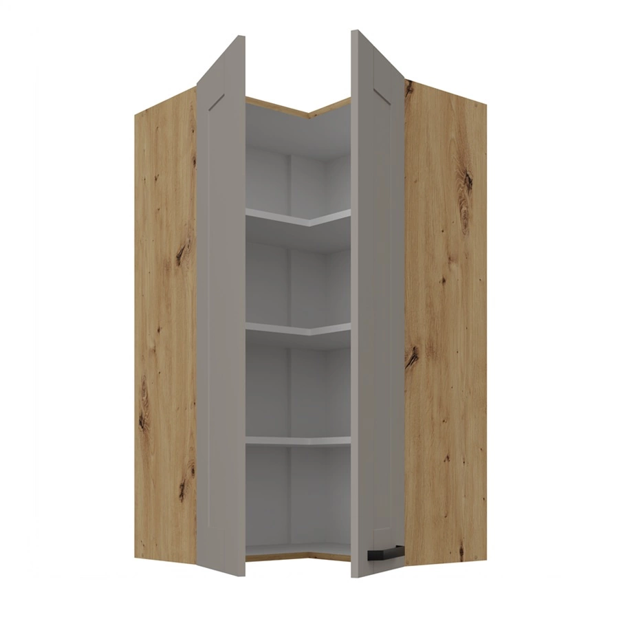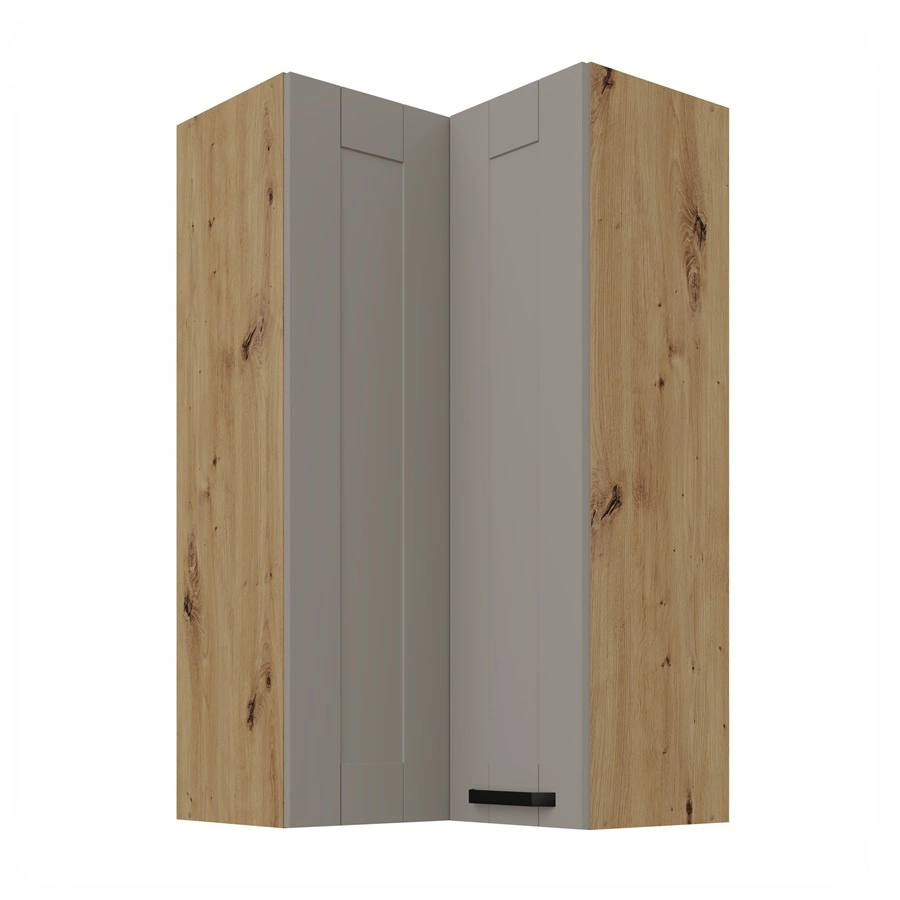 Szafka kuchenna narożna wisząca Linosa w kolorze szary beż / dąb artisan należy do kategorii mebli kuchennych modułowych, z których można utworzyć dowolne zestawy.